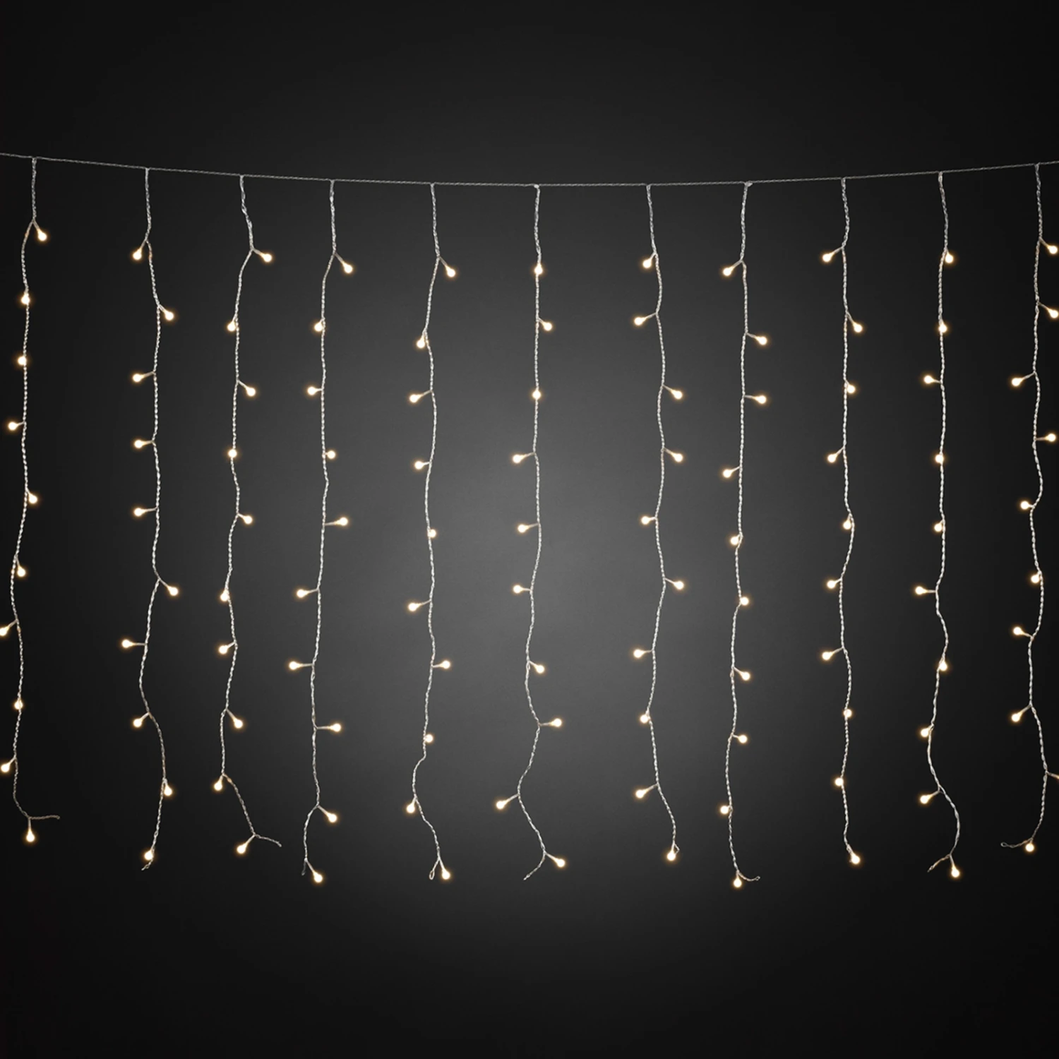 Die einzelnen Stränge dieses Lichtervorhangs sind jeweils 1 Meter lang, das Kabel ist transparent gearbeitet. 400 gleichmäßig verteilte LEDs erhellen mit warmweißem Licht die dunkle Winternacht und bewirken einen Lichterglanz, der in jedem Betrachter weihnachtliche Vorfreude aufsteigen lässt.