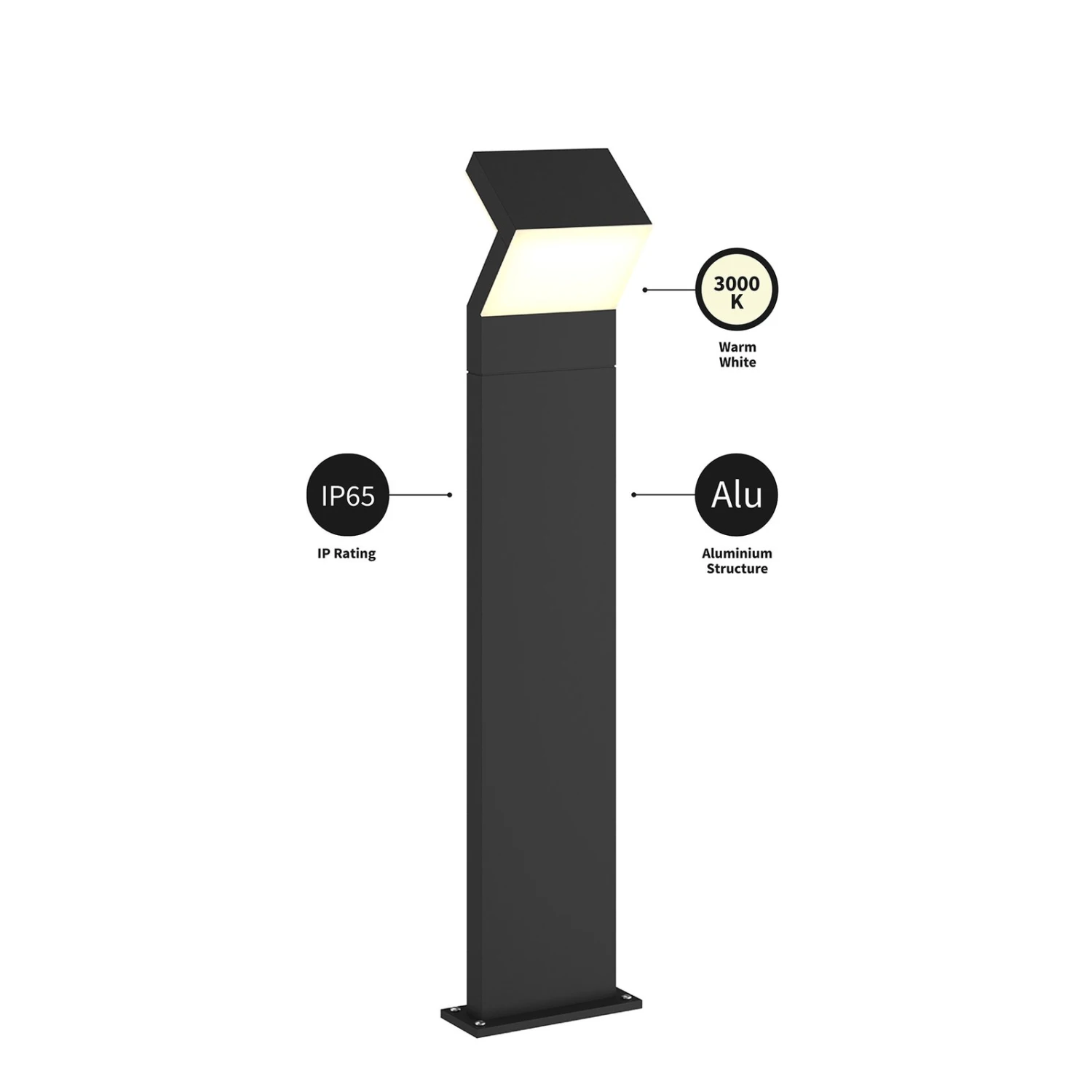Das moderne Design der LED-Wegeleuchte Havin bietet nicht nur optisch einen Blickfang, auch die Qualität kann überzeugen. Dank der hohen Schutzart von IP65 ist die Leuchte staubdicht und gegen Strahlwasser geschützt. Kleine Gartenpfade, Zufahrtswege oder auch Bereich rund um das Haus oder die Terrasse lassen sich so sicher und zuverlässig beleuchten. Die integrierten LEDs der LED-Wegeleuchte Havin strahlen dabei mit einem angenehmen, warmweißen Lichtschein.