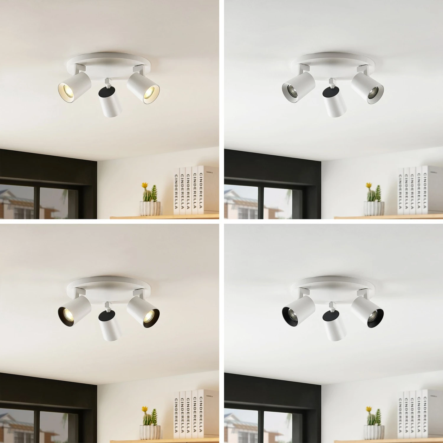Die Lichtquellen lassen sich um 90 Grad neigen und um 350 Grad um die eigene Achse drehen. Dies hat zum Vorteil, dass man die Beleuchtung im Raum immer wieder individuell an die eigenen Bedürfnisse anpassen kann. Diese zeitlose Leuchte ist für viele Einsatzarten eine optimale Ergänzung und kann auch im gewerblichen Bereich genutzt werden. Im Lieferumfang sind weiße und schwarze Dekoringe für die Strahler dabei.