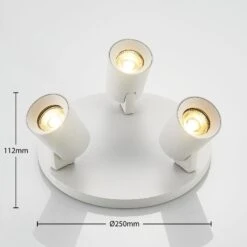 Der aus Aluminium hergestellte Deckenstrahler Iavo überzeugt mit seinem schlichten Design, das sich problemlos in unterschiedliches Interieur einfügen lässt. Die drei Strahlerköpfe sind auf der runden Deckenhalterung wie ein Rondell aufgebaut und beleuchten verschiedene Bereiche rundum.