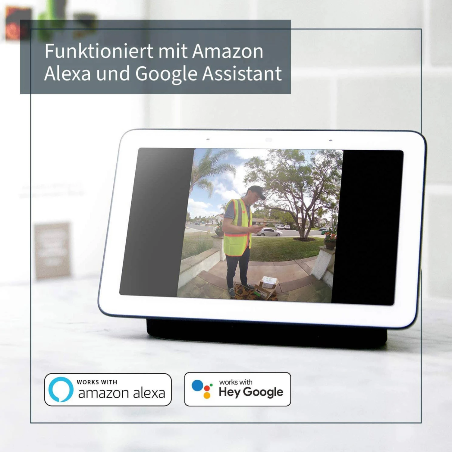 Die Video-Türklingel überträgt ein gestochen scharfes HD-Bild mit HDR und auch eine Nachtsicht-Funktion steht zur Verfügung. Sie ist wetter- sowie UV-beständig und hat eine integrierte Sirene zur Abschreckung. Betätigt man die Klingel, wird das verbundene Smartphone sofort mit Video angerufen. Auch vorab aufgenommene Sprachnachrichten können abgespielt werden, beispielsweise mit der Bitte an den Besucher, wiederum eine Sprachnachricht zu hinterlassen.