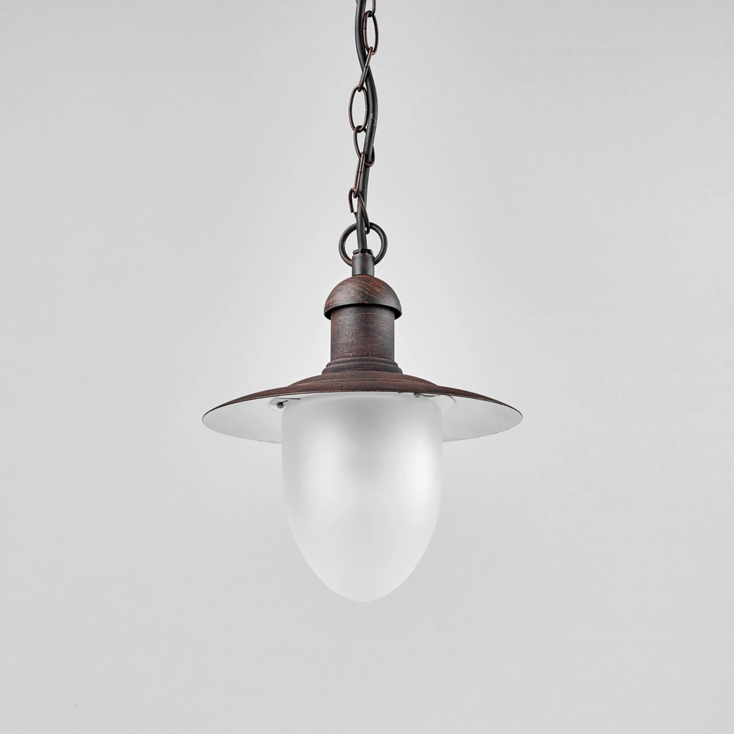 Die Hängeleuchte Aruba bietet sich für den Außenbereich an und trägt zum Beispiel auf der Terrasse zu einer besonderen Atmosphäre bei. Baldachin und Schirm sind über eine Kette verbunden. Das E27-Leuchtmittel wird von einem satinierten Glaskolben ummantelt.