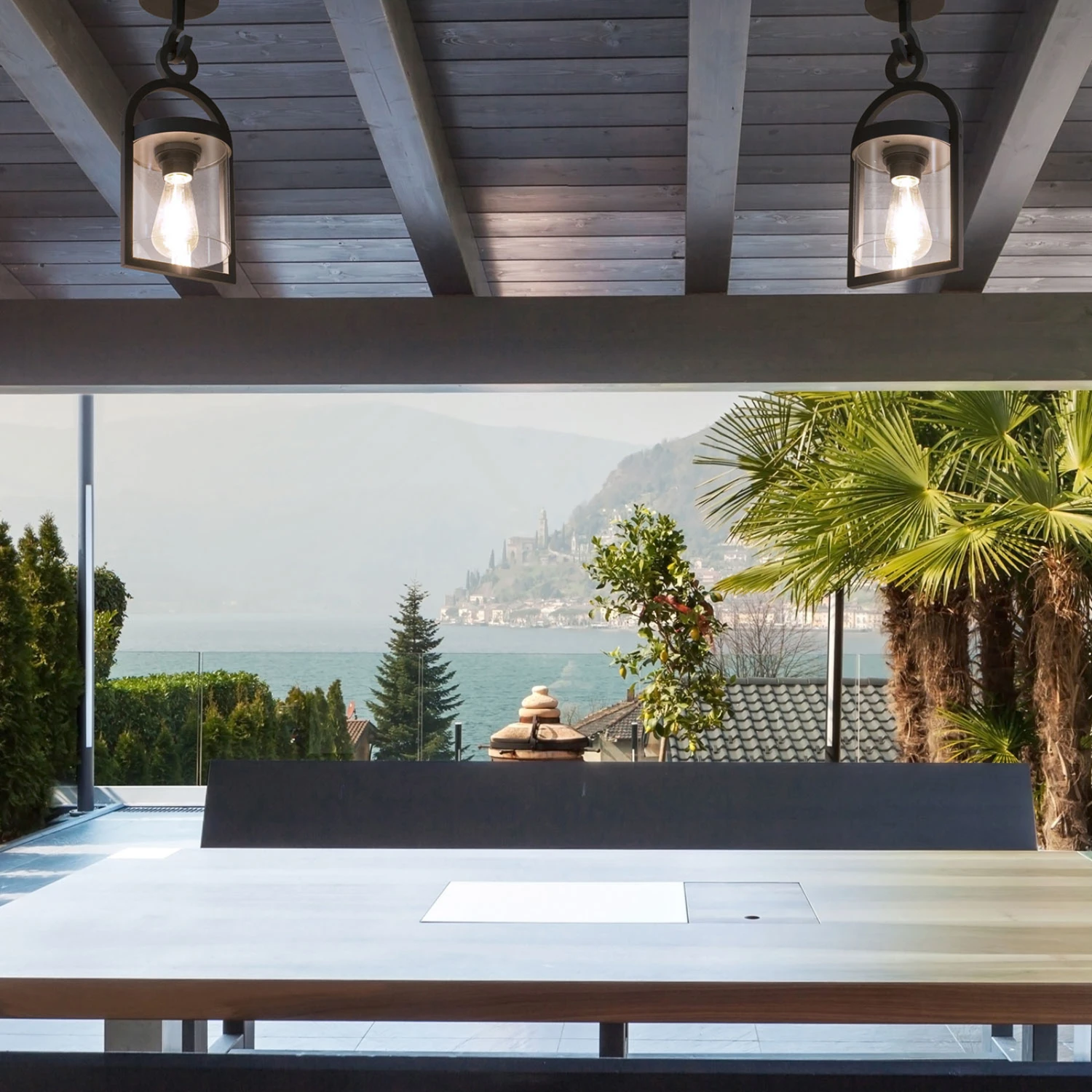 Hängeleuchte Maya vereint Modernität und rustikales Design zu einem Hingucker im Außenbereich