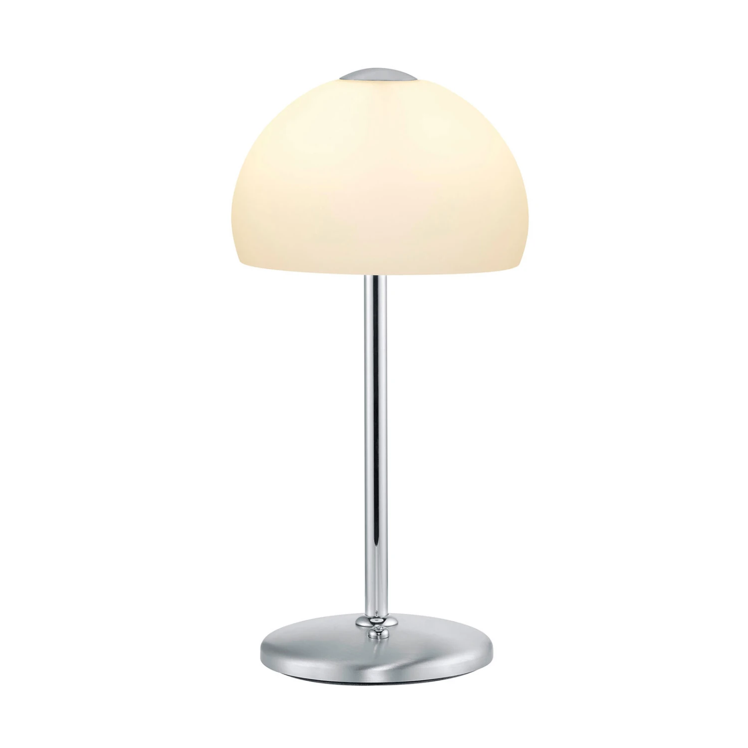 LED-Tischleuchte Meisterwerke mit halbrundem Opalglas-Schirm und Gestell in Nickel