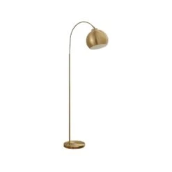 Moisia lässt sich wunderbar mit klassischen Wohnstilen kombinieren, denn die Oberfläche von Metallgestell und halbkugelförmigem Schirm ist in einem ansprechenden Messington gehalten, der sich mit mattem Finish präsentiert. Die Stehleuchte präsentiert sich in einer attraktiven Bogenform, die stets stilvoll erscheint. Sie besitzt aber auch eine praktische Funktion, denn so kann man den Fuß hinter dem Sofa platzieren, der Schirm befindet sich dann aber an einem präsenteren Ort, so dass der Lichtschein genau dort auftrifft, wo er erwünscht ist.