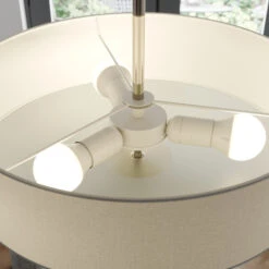 Ein ganz besonders zeitloses Design kennzeichnet die Deckenleuchte Josia, deren weißer Stoff geradezu universal verwendbar ist. An der Unterseite befindet sich ein satinierter Diffusor aus Glas, der eine besonders weiche Verteilung des Lichts bewirkt, so dass es wohnlich und einladend erscheint. Durch die Ausstattung mit insgesamt 3 Leuchmitteln wird eine angemessene Helligkeit erzielt, die nicht nur im Ess- und Wohnzimmer willkommen ist, sondern auch in Flur und Schlafzimmer für das passende Licht sorgt. Auch dort wirken Stoff-Deckenleuchten stets stilvoll und elegant. Nicht nur die Verwendung von klassischen Glüh- oder den etwas energieeffizienteren Halogenlampen ist möglich, ebenso können LEDs und Energiesparleuchtmittel eingesetzt werden.