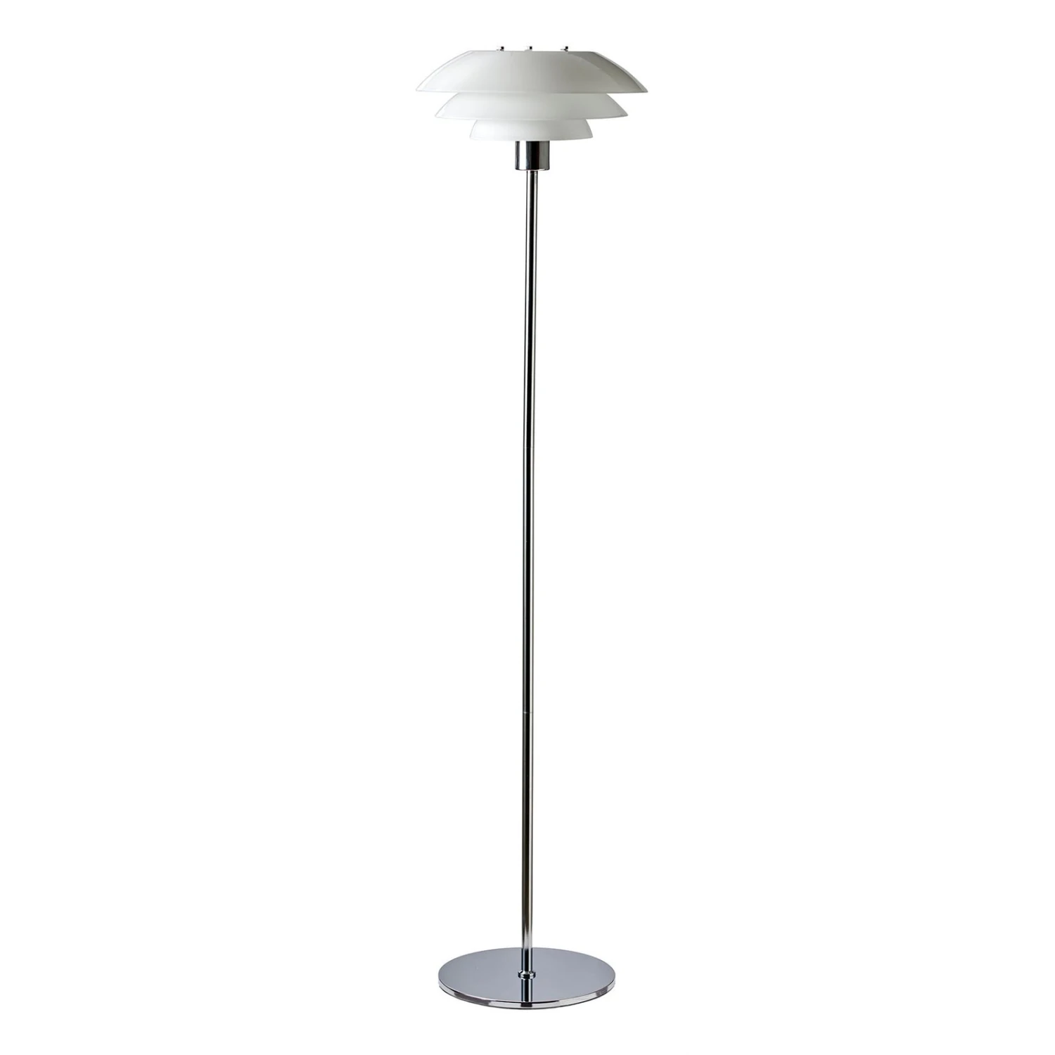 Stehleuchte DL31 mit Schirm aus opalweißem Glas und Chromgestell