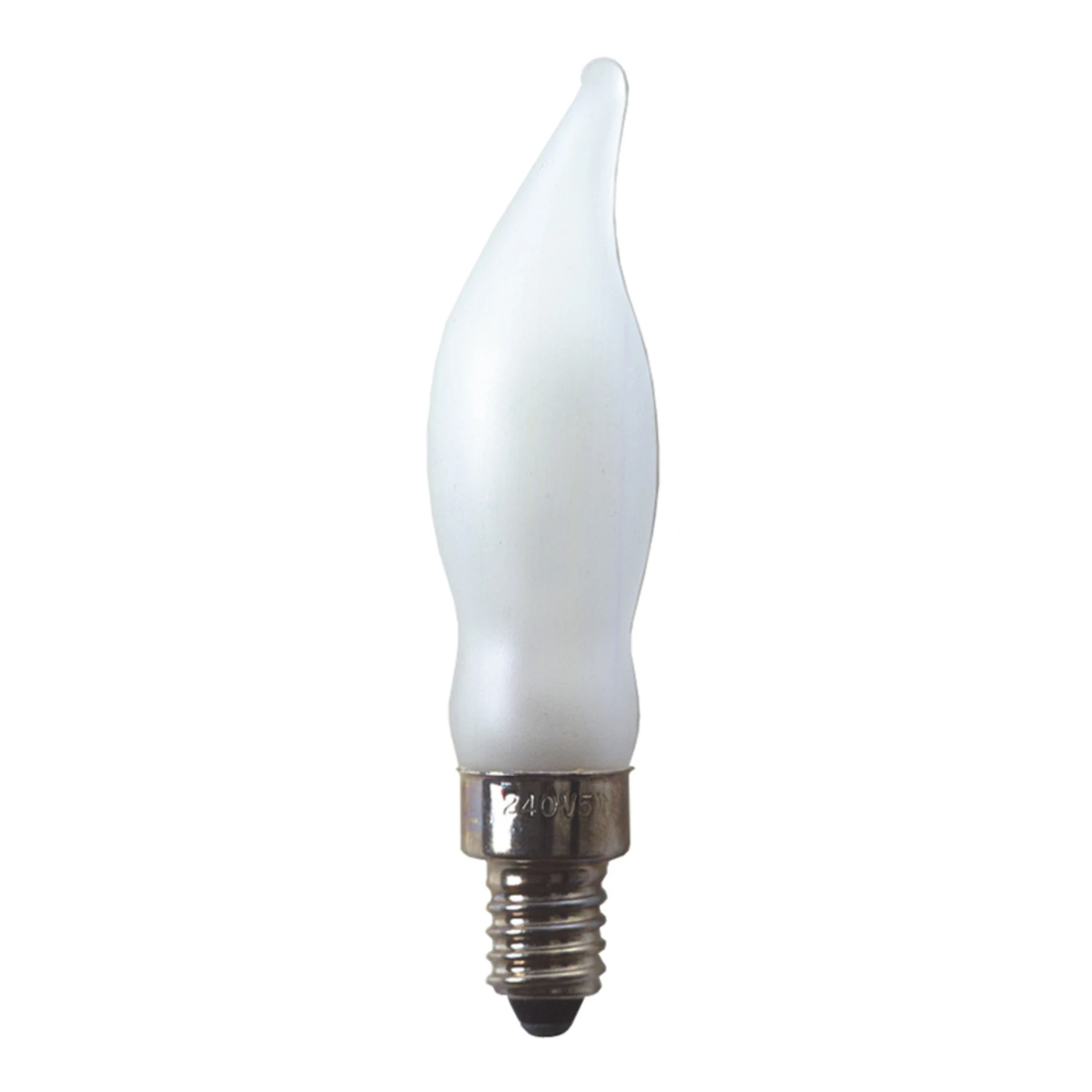 LED-Ersatzlampe in Windstoß-Kerzenform mit einer sehr warmweißen Lichtfarbe von 2.200 Kelvin.