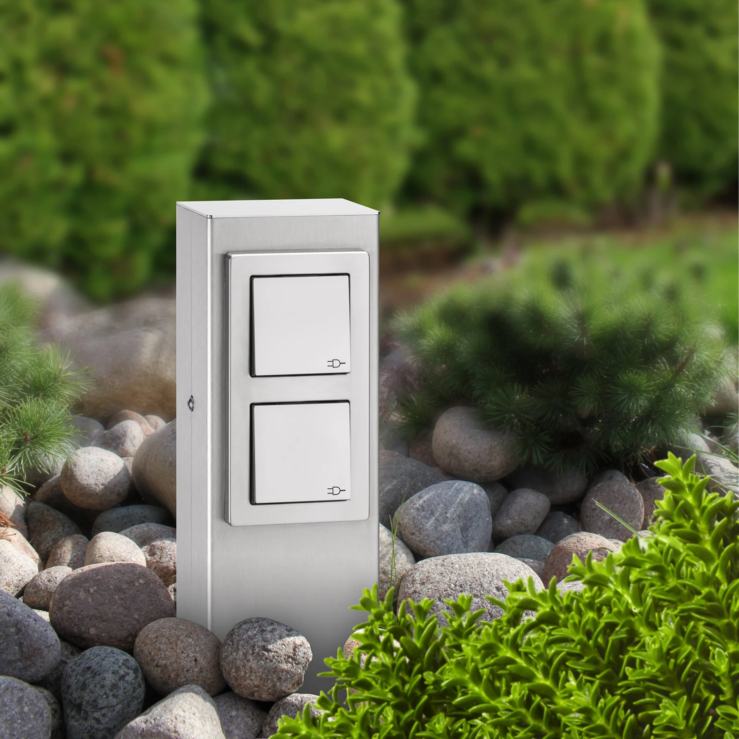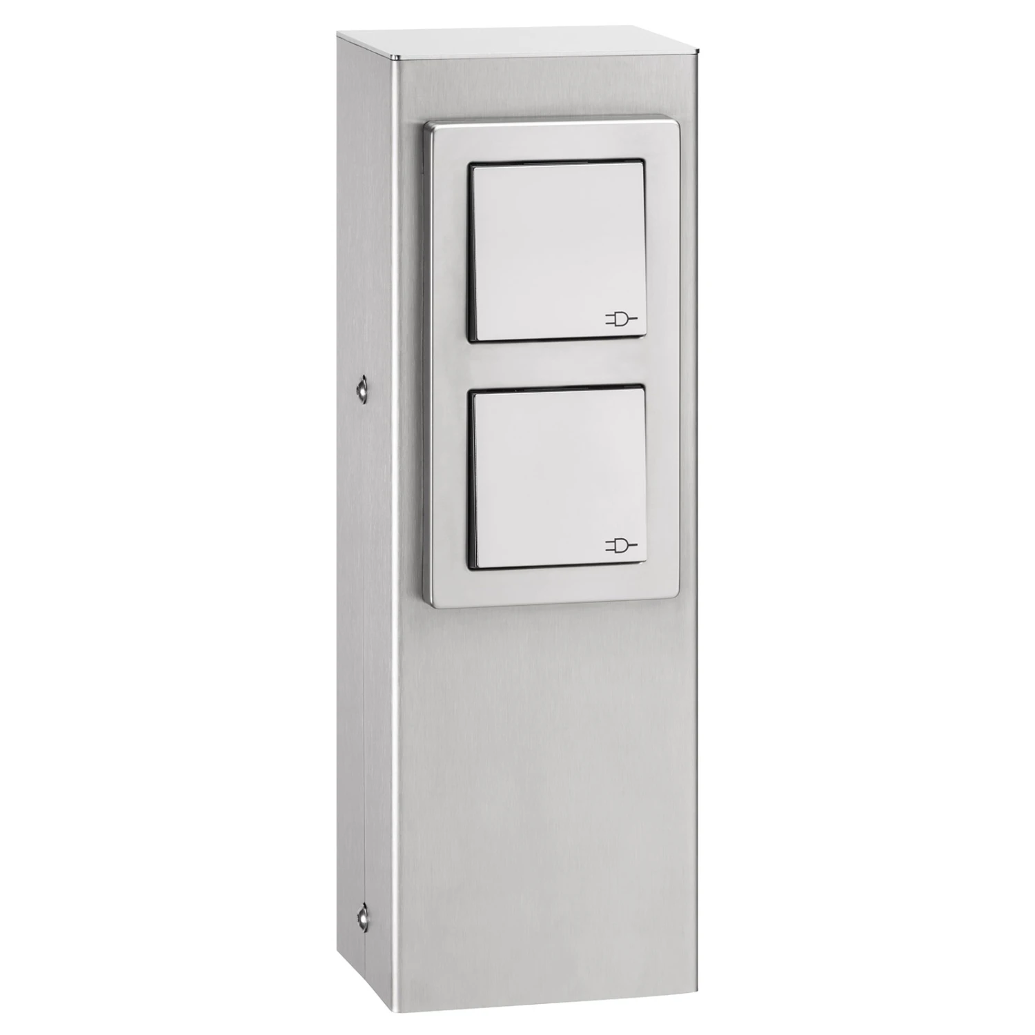 Steckdosensäule aus Edelstahl mit Blenden und innenliegender Verdrahtung