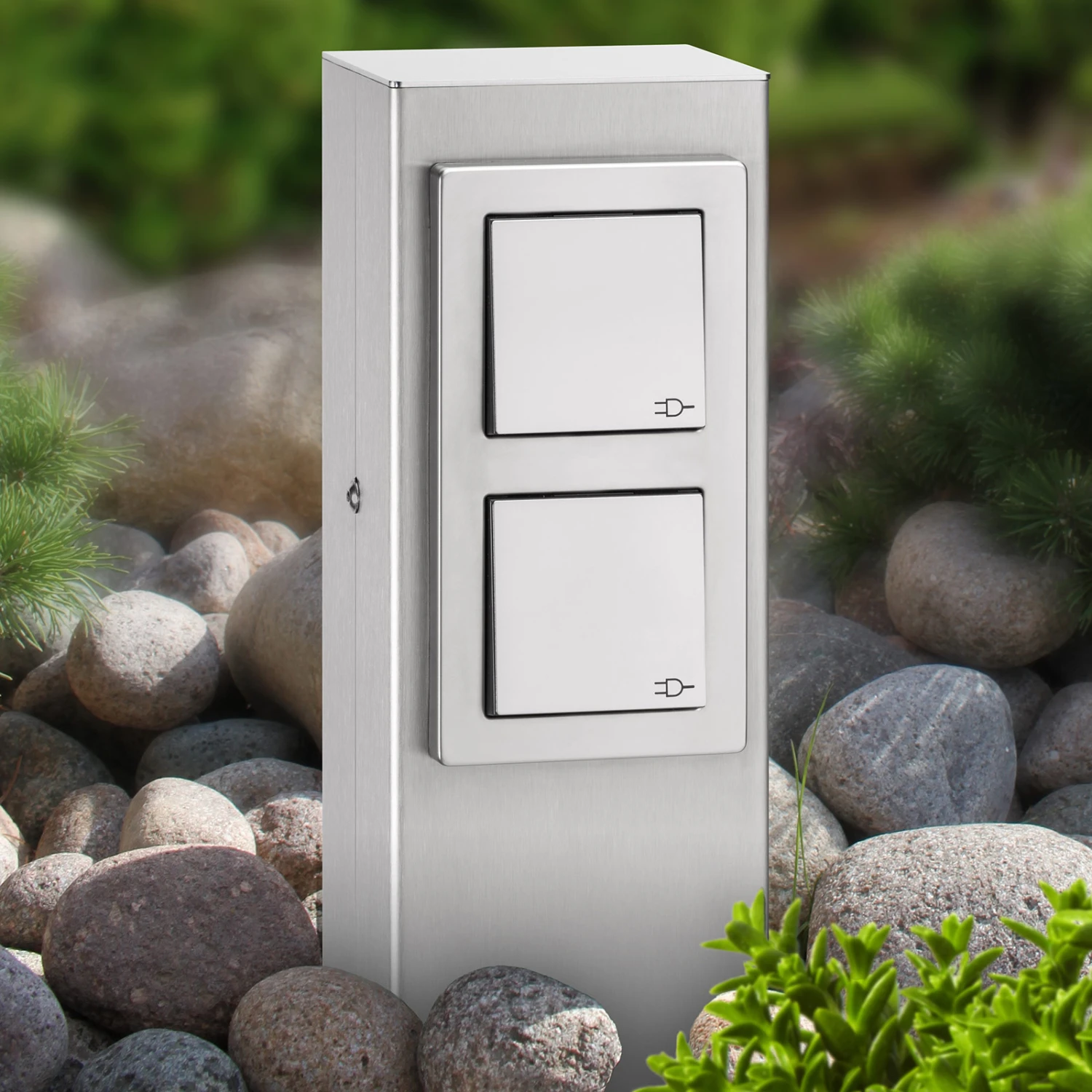 Diese praktische Steckdosensäule wird aus hochwertigem Edelstahl gefertigt. Klappbare Blenden schützen die Steckdosen vor allerlei Witterungseinflüssen. Zusätzlich verfügt die Säule über einen innenliegenden Fuß zur Befestigung im Boden und ist bis zur innenliegenden Anschlussdose verdrahtet.