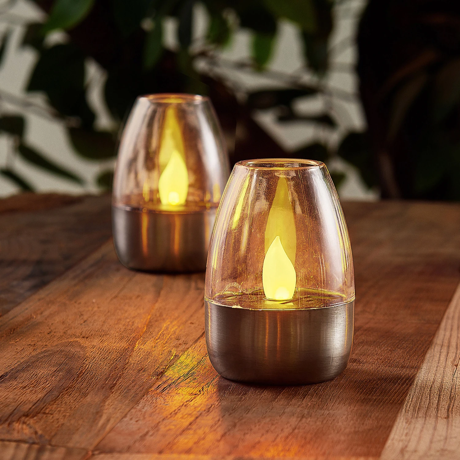 Hier erhält man 10 dieser äußerst dekorativen Solarleuchten für den Außenbereich, die mit amberfarben flackernden LEDs betrieben werden und somit Kerzenschein besonders schön und stimmungsvoll imitieren. Im unteren Teil besteht jede LED-Solarlampe aus Edelstahl und im oberen Teil sitzt ein klares Element aus Kunststoff, durch das man direkt auf die Flamme mit Kerzenlichteffekt blicken kann. Die Form der kleinen Leuchten mit kompakter Bauform ist leicht bauchig und wirkt im Gesamten sehr stilvoll. Sie beginnen zu leuchten, wenn die Dunkelheit eintritt.