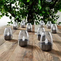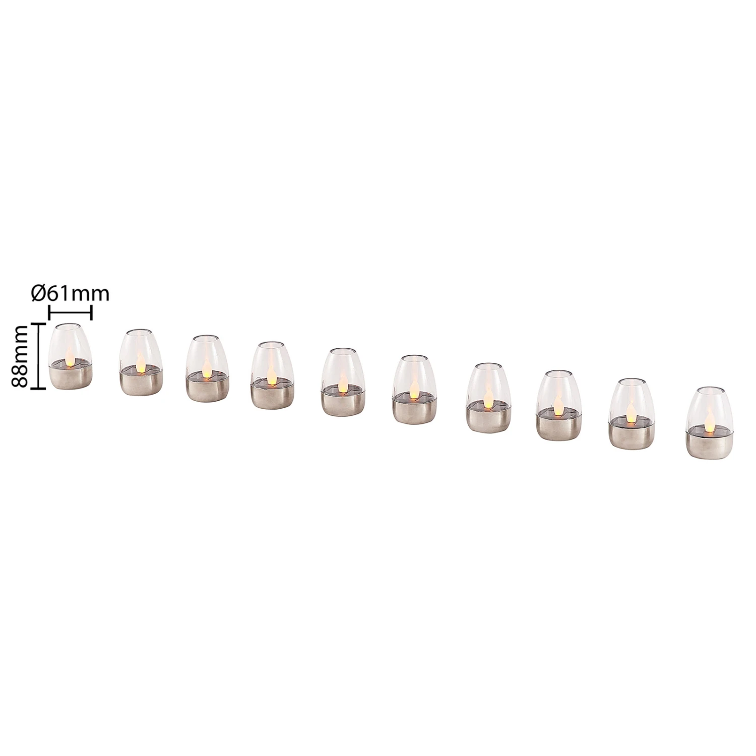 Dekorative LED-Solarlampen Nicuria aus Edelstahl mit Kerzenlicht-Effekt im 10er-Set