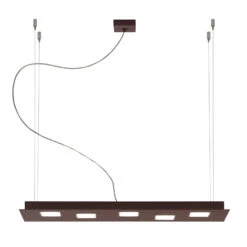 Perfekt über einen Esstisch oder auch Konferenztisch passt die LED-Hängelampe Quarter, in deren Aluminiumkorpus sich fünf quadratische Aussparungen aus Polycarbonat befinden, durch die das Licht der LEDs nach unten fällt. Auch nach oben gibt sie Licht ab und erzeugt damit angenehmes Indirektlicht. Die LEDs lassen sich dimmen (Triac), ein Dimmer ist jedoch nicht inklusive.