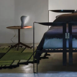 Einem Leuchtturm gleich, sorgt die Tischleuchte Binic mit ihrem verhältnismäßig großen, durch einen satinierten Polycarbonat-Diffusor bedeckten Lichtauslass für einen intensiven, kegelförmigen Lichtschein. Der schräg nach unten gerichtete Leuchtenkopf erfüllt nicht nur seinen Zweck der direkten Lichtverteilung, sondern symbolisiert gleichzeitig auch eine freundliche Geste der Zuneigung, mit der die Leuchte sofort Gefallen findet.