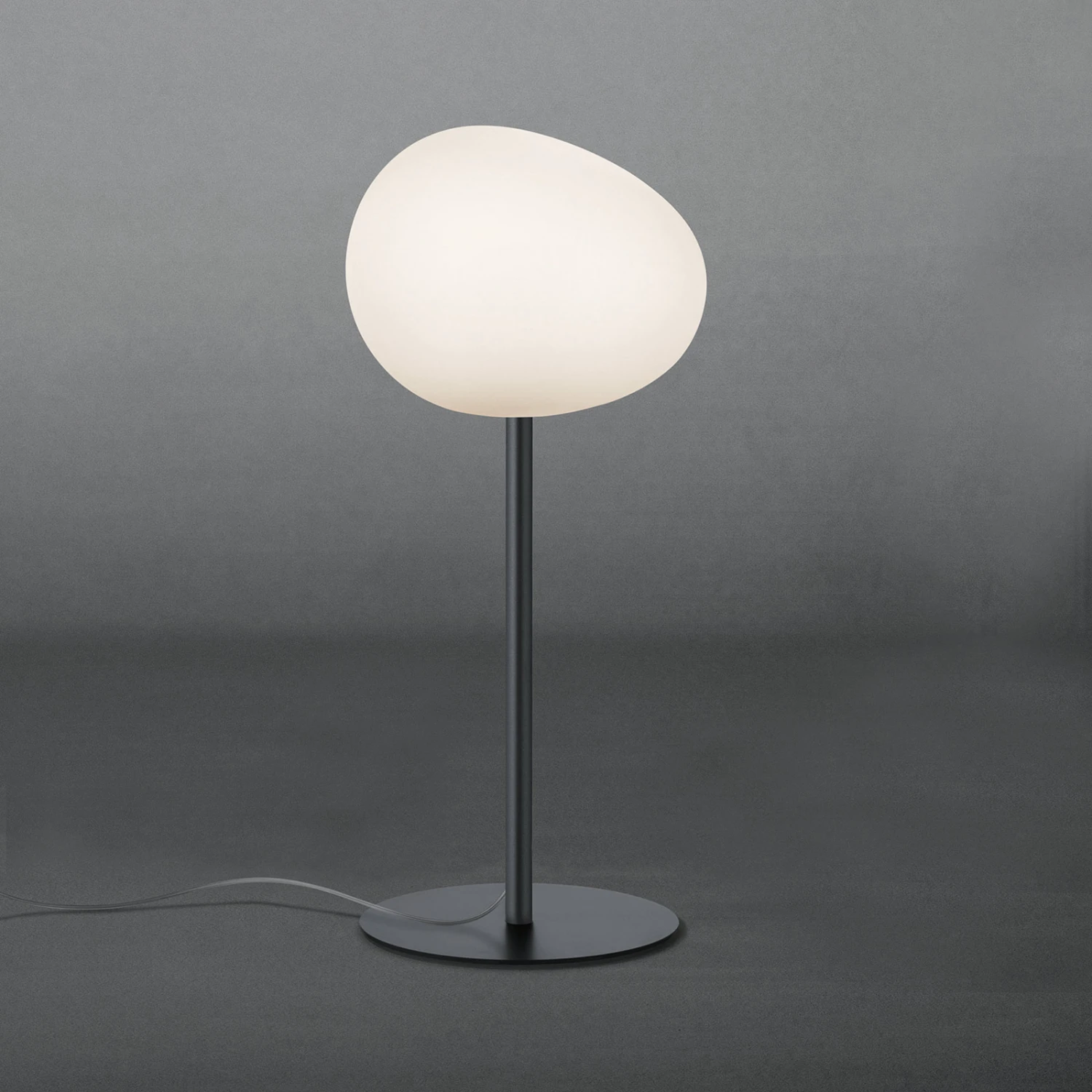 Die Tischleuchte Gregg ist minimalistisch, aber dennoch außergewöhnlich. Die Form des Schirms erinnert an einen Kieselstein, der über Jahre hinweg durch das Wasser glatt geschliffen wurde. Durch diese organische Form präsentiert sich die Leuchte immer wieder in einer anderen Silhouette, je nachdem, aus welchem Winkel sie betrachtet wird. Mit ihren klaren Linien harmoniert Gregg besonders mit Einrichtungsstilen, die durch Minimalismus geprägt sind.