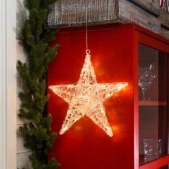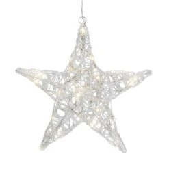 Dieser 5-zackige Kunststoffstern ist transparent gearbeitet und fällt so tagsüber kaum auf. Umso größer ist der Effekt, wenn abends die Beleuchtung eingeschaltet wird und der Stern, der von 24 warmweißen LEDs, illuminiert wird, strahlend hell aufleuchtet. Ein toller Fensterschmuck für die Advents- und Weihnachtszeit.