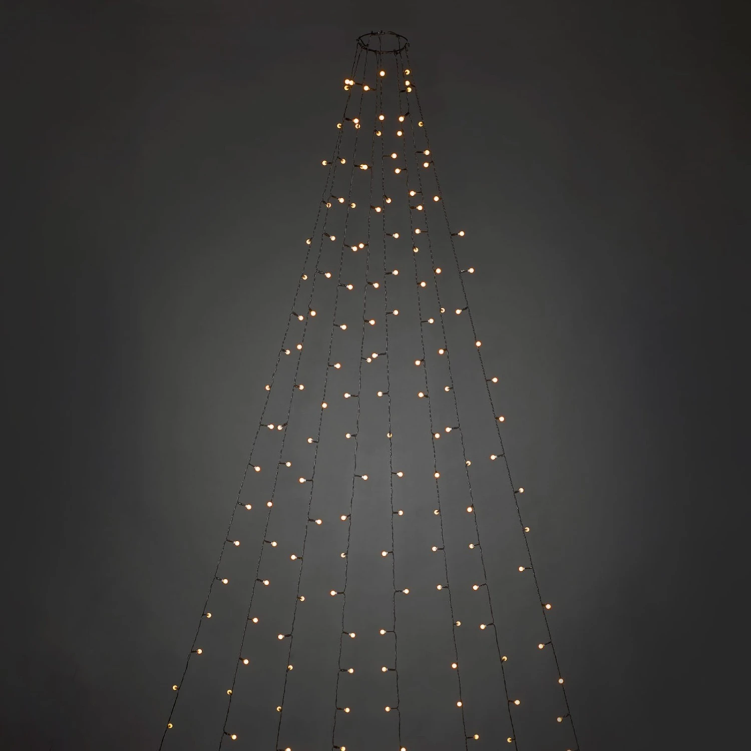 Die Montage gestaltet sich kinderleicht: Einfach den Ring über die Baumspitze drapieren und ringsherum die insgesamt acht Stränge mit Globe-LEDs herunterlassen. Fertig ist der perfekte Baumschmuck.