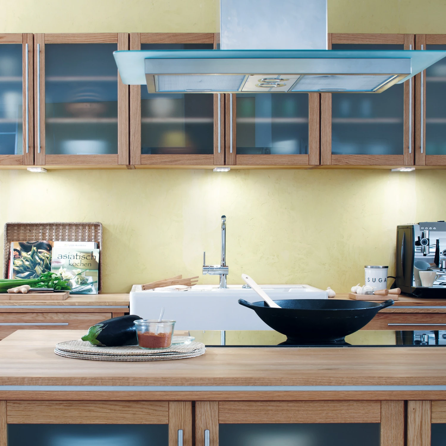 Die flache, rechteckige LED-Unterschrankleuchte LED Slim-Pad F ist in diesem Set gleich dreimal enthalten und lässt so in einer Reiheninstallation die Fläche unterhalb der Leuchten erstrahlen. Die Leuchten sind mit langlebigen LEDs ausgestattet, die ein universalweißes Licht spenden. Der nach unten gerichtete Lichtkegel ist besonders für die Ausleuchtung der Arbeitsfläche in der Küche geeignet.