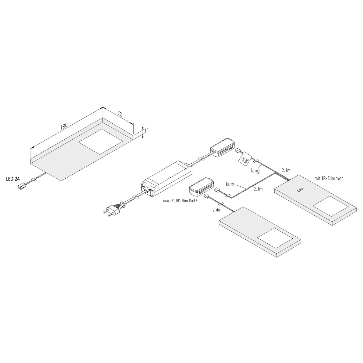 Unterbauleuchte LED Slim-Pad F im praktischen 3er Set mit Dimmer