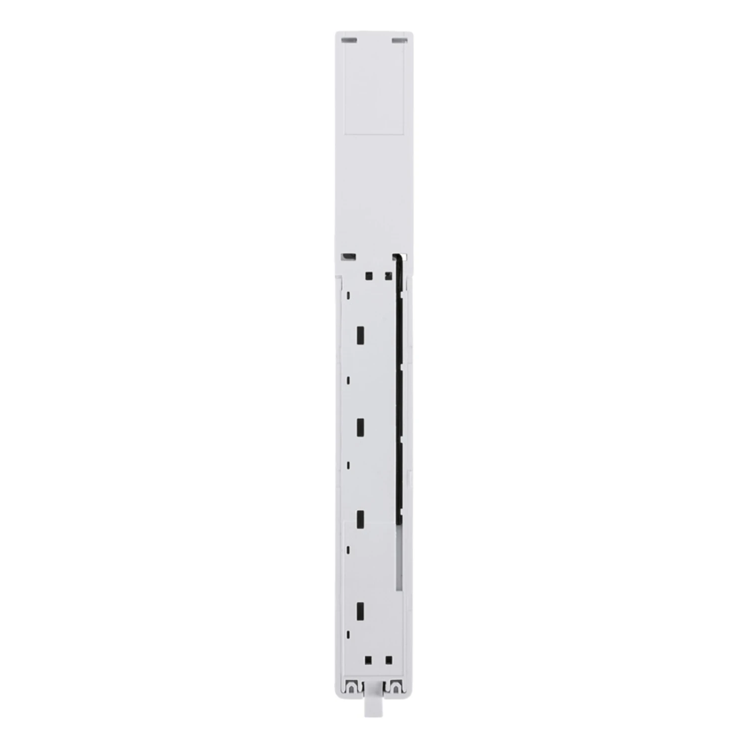 Dieser Öffnungssensor mit optischer Infrarot-Lichtschranke verschwindet unauffällig in Tür- oder Fensterrahmen mit einem Mindestabstand von 1,5 cm zwischen Rahmen und Flügel; ein weiterer Gegenkontakt wird nicht benötigt. Zwei austauschbare Batterien stellen einen Betrieb für etwa vier Jahre sicher.