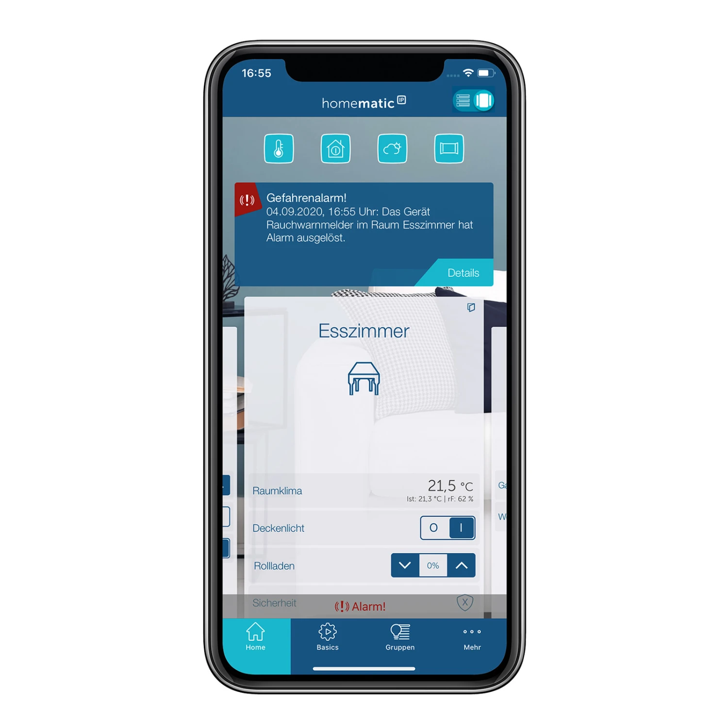 Der praktische Funk-Rauchmelder mit Q-Label aus der Homematic-IP-Smart-Home-Produktserie bietet viele Vorteile und große Sicherheit im ganzen Haus. Die Rauchmelder selbst werden miteinander vernetzt und alarmieren im Ernstfall nicht nur in dem Raum, in dem der Brand ausgebrochen ist, sondern überall und alle installierten Rauchmelder. Dazu schaltet sich direkt ein Notlicht ein, welches auch in stark verqualmten Räumen gute Orientierung bietet.