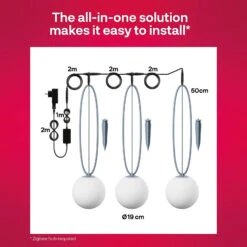 Die Smart Outdoor Globe Light Colour basiert auf dem ZigBee-Standard, so dass sie auch problemlos in ein bestehendes Smart-Home-System, wie zum Beispiel Philips Hue, Ikea Tradfri oder Samsung Smart Things, eingebunden werden kann.