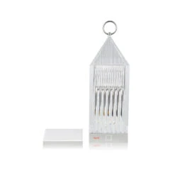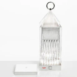 Der italienische Architekt und Designer Fabio Novembre entwarf diese tragbare LED-Tischleuchte in Form einer alten, klassischen Laterne. Das Besondere hierbei: Im Versuch die Laterne so minimalistisch wie möglich auszustatten, ist die Lichtquelle nur im unteren Sockel der Leuchte angebracht. Um das Licht auch hell genug erstrahlen zu lassen, kommt die spezielle Oberfläche der Laterne ins Spiel. Die Facettierungen im Korpus sorgen dafür, dass die tragbare Laterne genügend Licht spendet. Der Clou der universell einsetzbaren Leuchte: die Ladestation, auf der sich die LED-Tischleuchte Lantern wieder aufladen lässt.