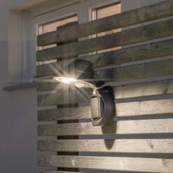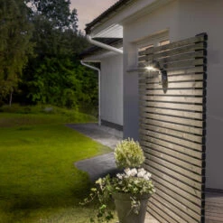 Die LED-Außenwandleuchte Prato ist ein überaus flexibel einsetzbarer Lichtspender, denn aufgrund der Tatsache, dass die Leuchte mit Batterien betrieben wird, kann sie völlig netzstromunabhängig montiert und betrieben werden. Zudem ist sie mit einem integrierten Bewegungssensor bestückt, der bei Erkennung einer Bewegung automatisch das universalweiße Licht der im Leuchtenkopf verbauten LED einschaltet. Um das Licht auch genau dorthin zu lenken, wo es benötigt wird, lässt sich der Kopf individuell ausrichten. Arbeitszeit mit 2 x D Batterien (nicht enthalten): ca. 2500 x 30 Sek.