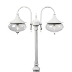 2-flammige Mastleuchte Libra aus Aluminium mit großen, klaren Acrylglasschirmen