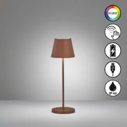 Die LED-Akku-Tischleuchte Cosenza kann im Innen- und Außenbereich vielfältig verwendet werden, überall dort, wo Licht für ein gemütliches Ambiente benötigt wird. Sie wird inklusive USB-Kabel, Akku und kleiner Ladestation geliefert. Während des Ladevorgangs kann die Leuchte weiterhin problemlos betrieben werden.