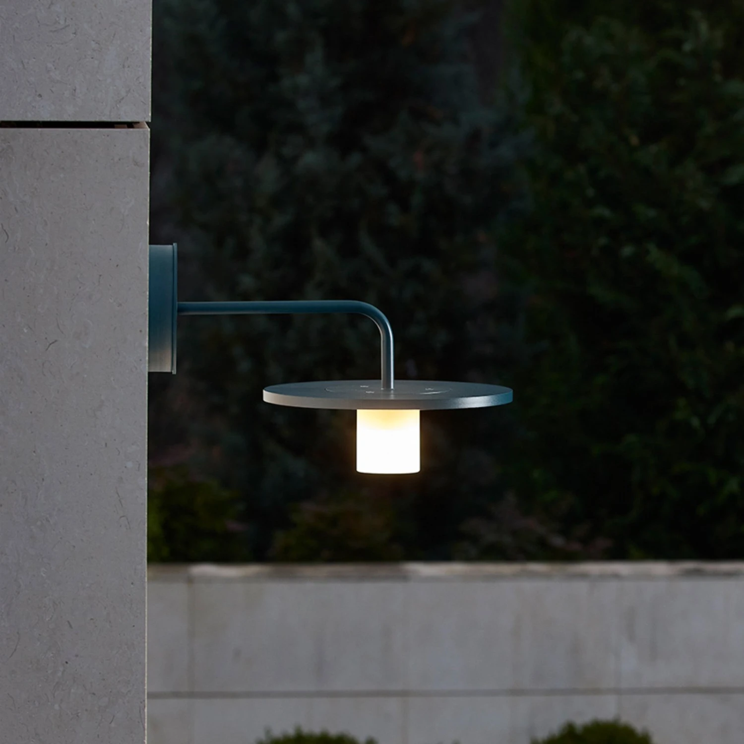 Die in Barcelona ansässigen Designer Jordi Veciana und Skye Maunsell schufen die Leuchtenserie Montoya als moderne, reduzierte Interpretation klassischer Außenleuchten. Die LED-Außenwandleuchte ist aus Aluminium gearbeitet und setzt sich aus einer runden Wandbefestigung, einem nach unten geneigten Ausleger und einem flachen, runden Schirm zusammen. Letzterer ist an der Unterseite mit einem sandgestrahlten Glasdiffusor ausgestattet, der eine warmweiße LED-Lichtquelle beherbergt.