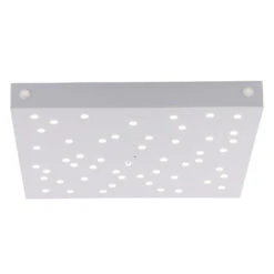 Das Erscheinungsbild der Deckenleuchte LOLAsmart Stars wird ihrem Namen gerecht: Die LEDs liegen im quadratischen Metallgestell fast vollständig verdeckt und werfen ihr Licht nur punktförmig durch kleine runde Öffnungen an der Unterseite in den Raum – fast so, wie Sterne am Nachthimmel.
