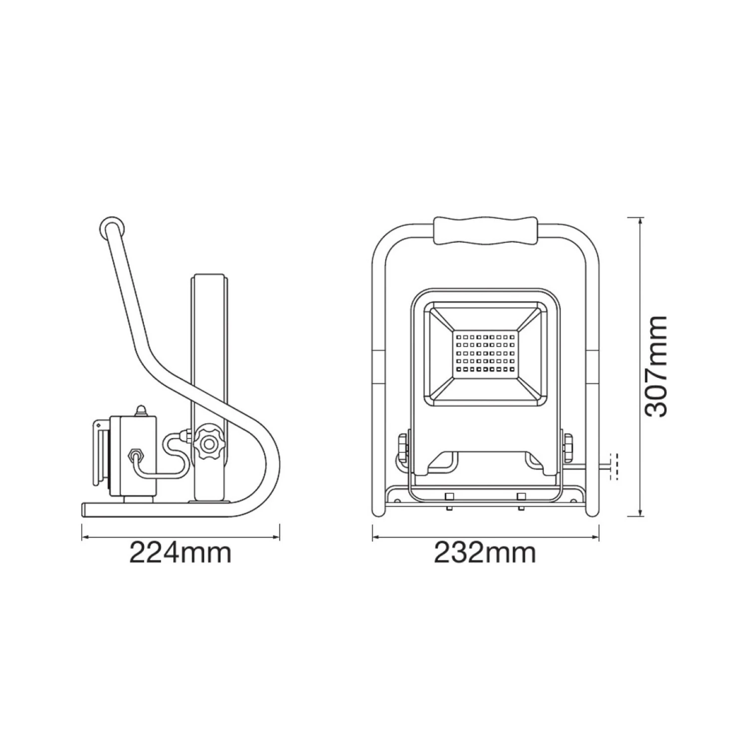 LED-Baustrahler Worklight R-Stand – tragbares Arbeitslicht mit zusätzlichen Steckdosen