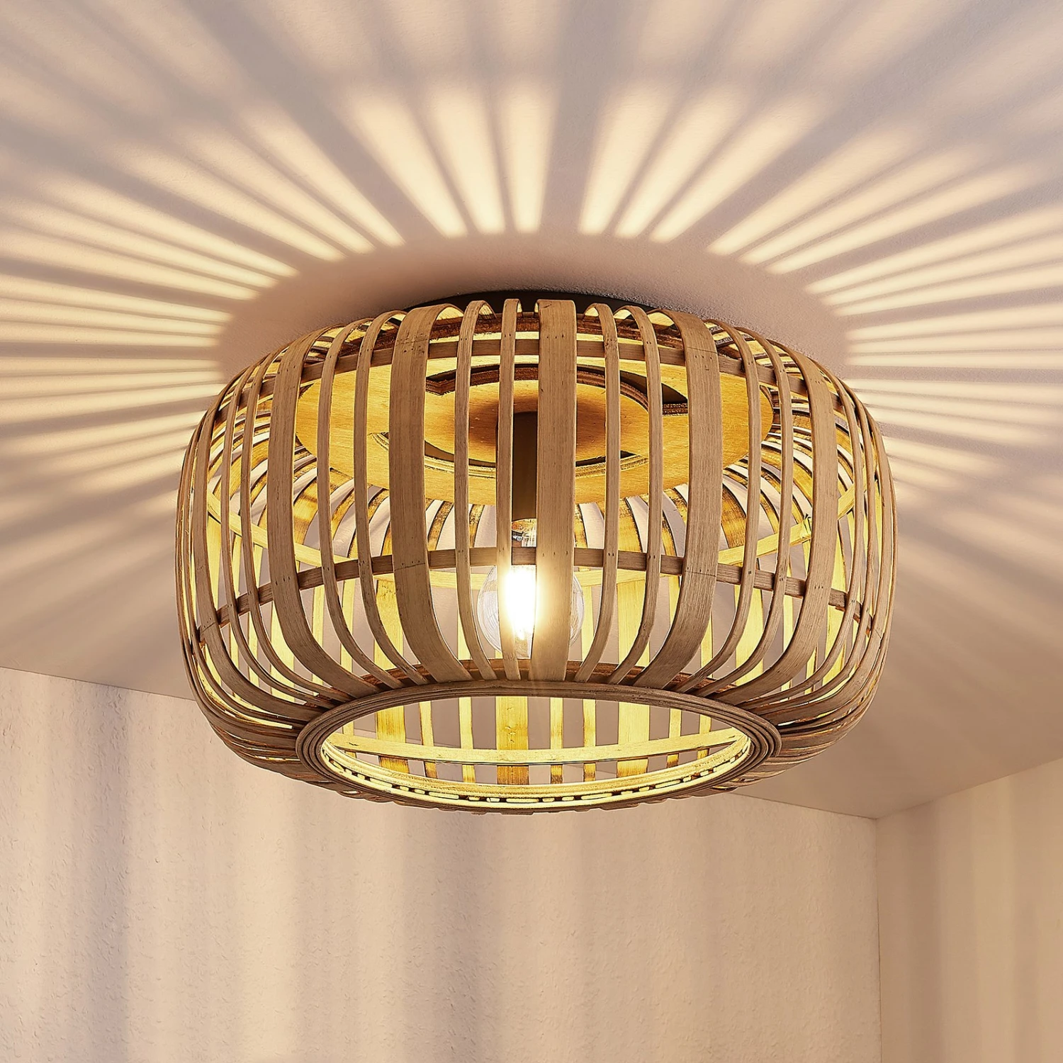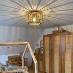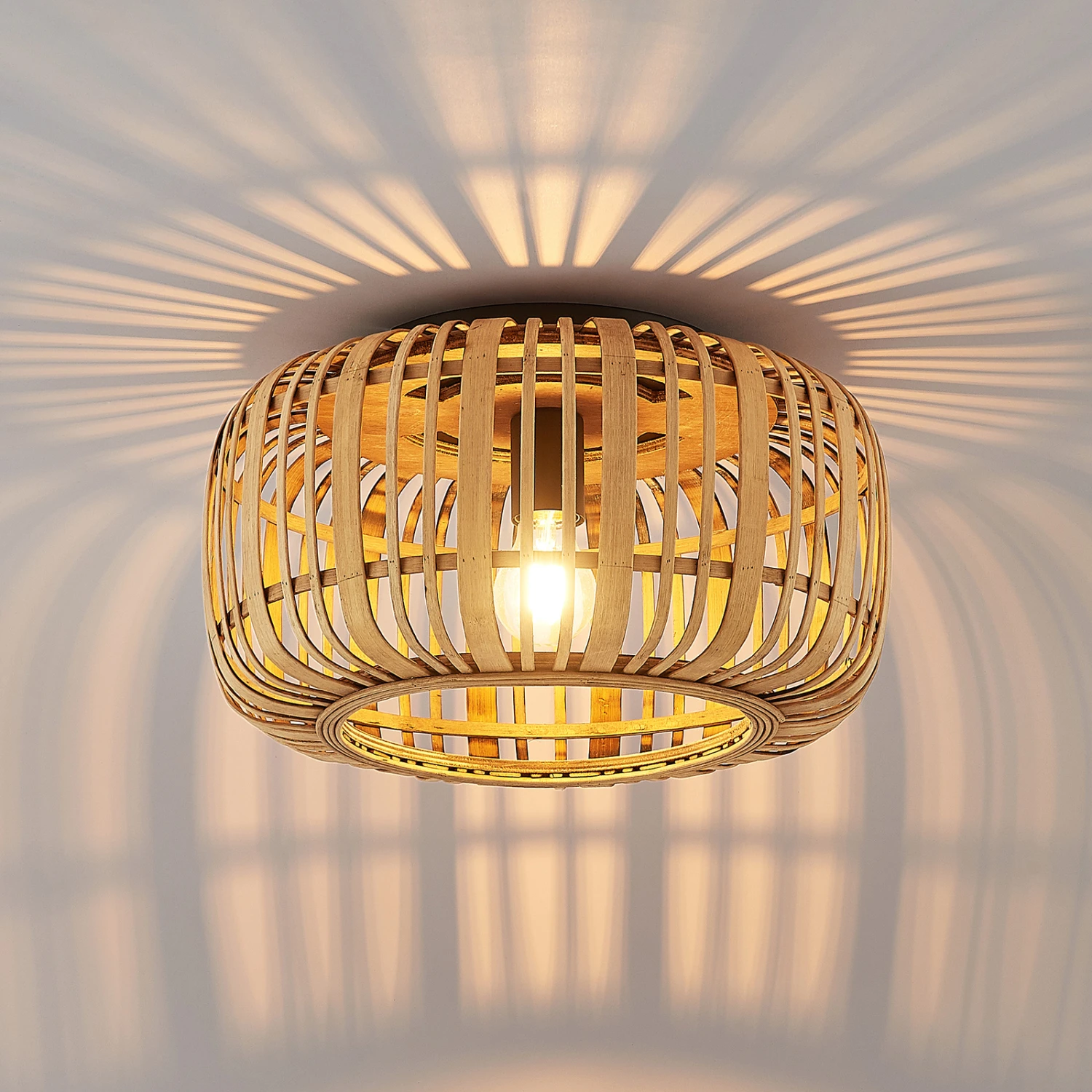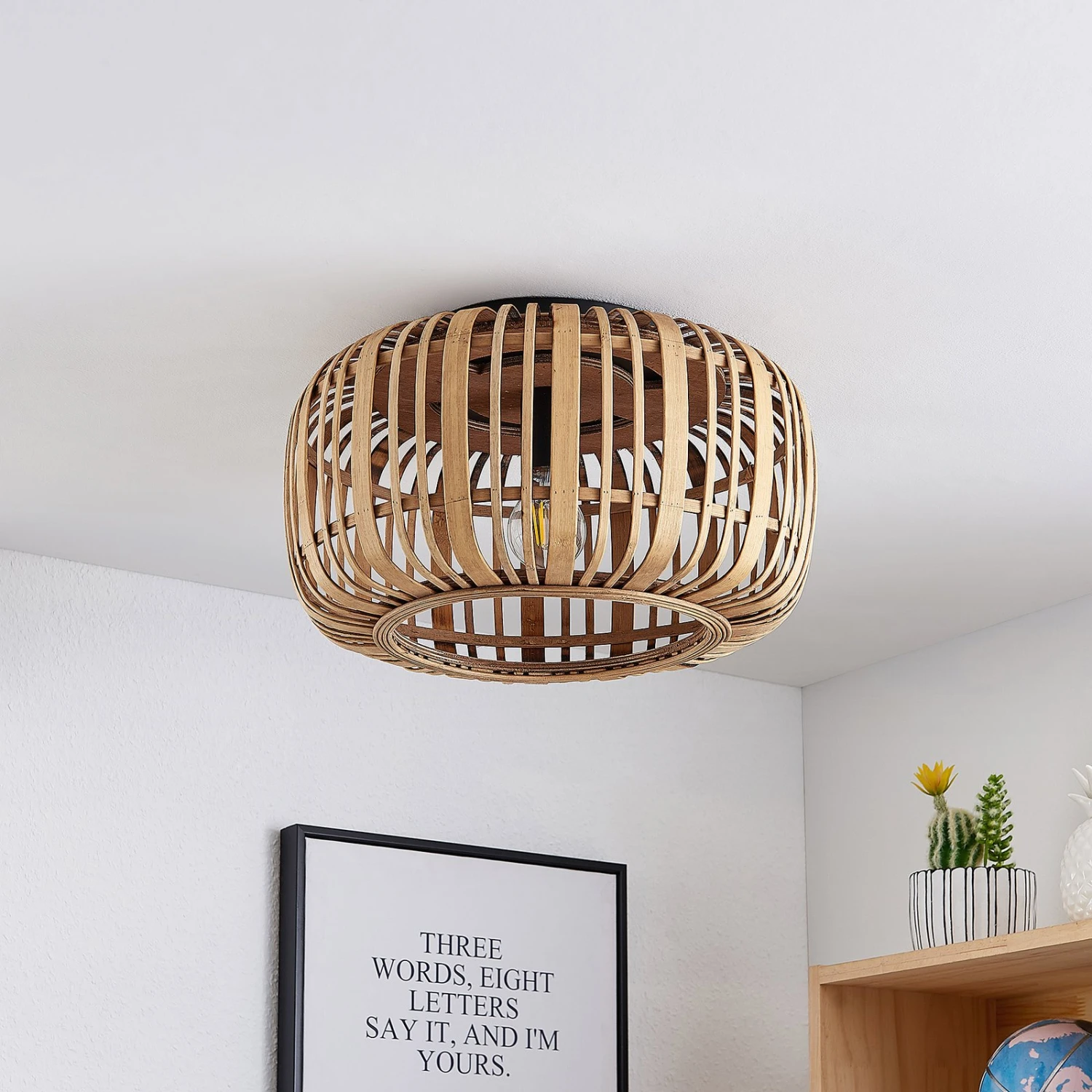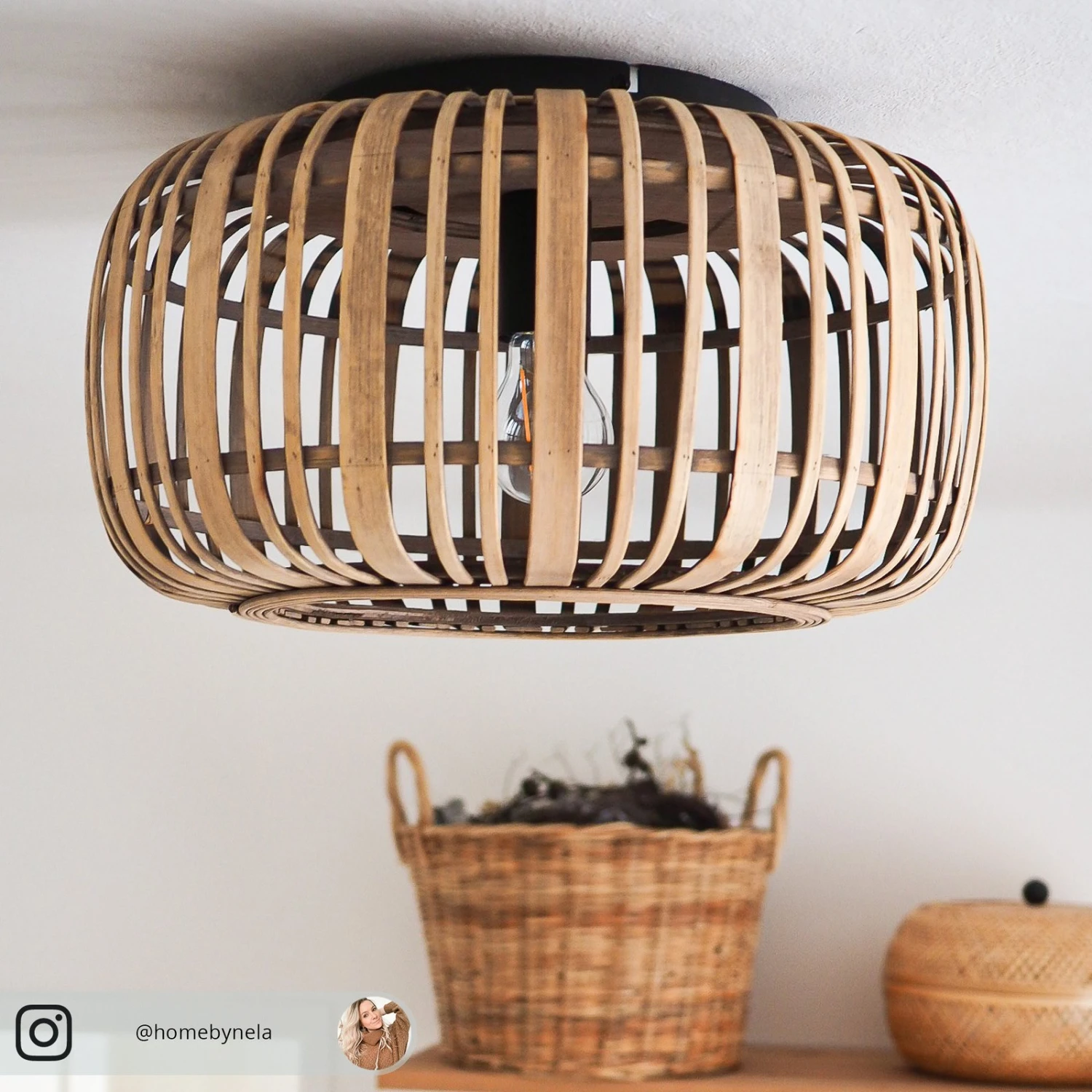Deckenleuchte Canyana mit naturfarbenem Rattanschirm