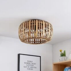Warm und behaglich wirkt die Deckenleuchte Canyana durch ihren Schirm aus naturfarbenen Rattanstreben. Das Deckenelement der Leuchte besteht aus schwarzem Metall und ist mittig mit einer E27-Fassung ausgerüstet. Das Leuchtmittel im Innern des Schirms ist nicht nur von außen sichtbar, sondern strahlt auch effektvoll durch die zahlreichen Zwischenräume zwischen den Rattanstreben. Sehr hübsch wirkt die Leuchte mit einer Globelampe. Die helle Leuchte bringt ein Stück Natur in jeden Raum und lässt sich in sehr viele Einrichtungen integrieren.