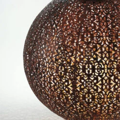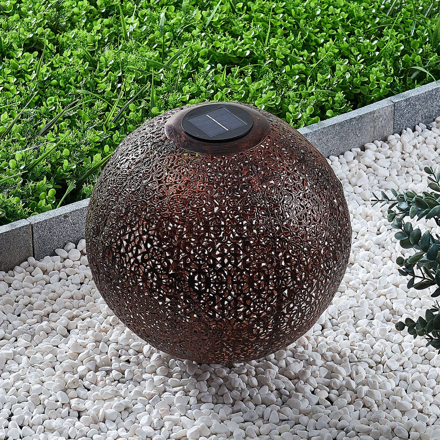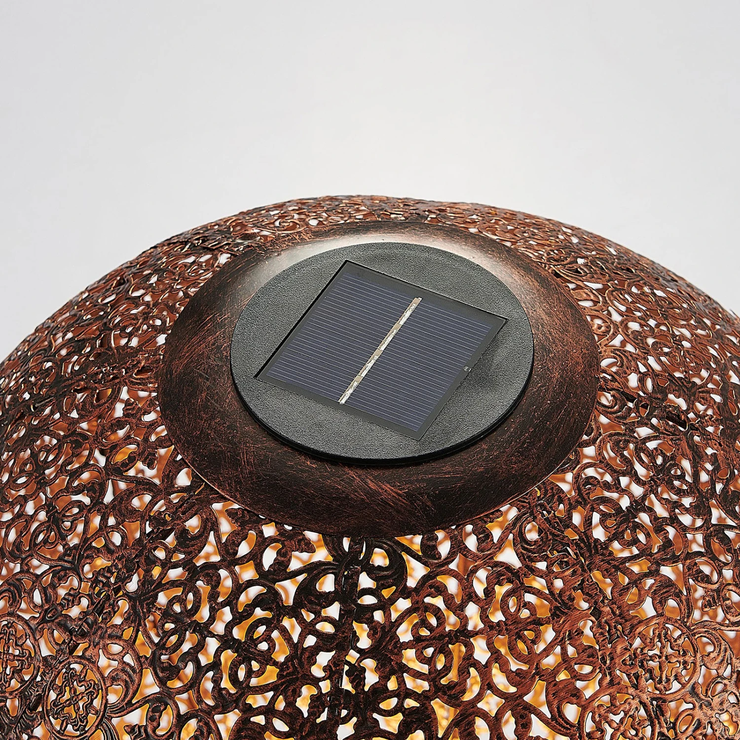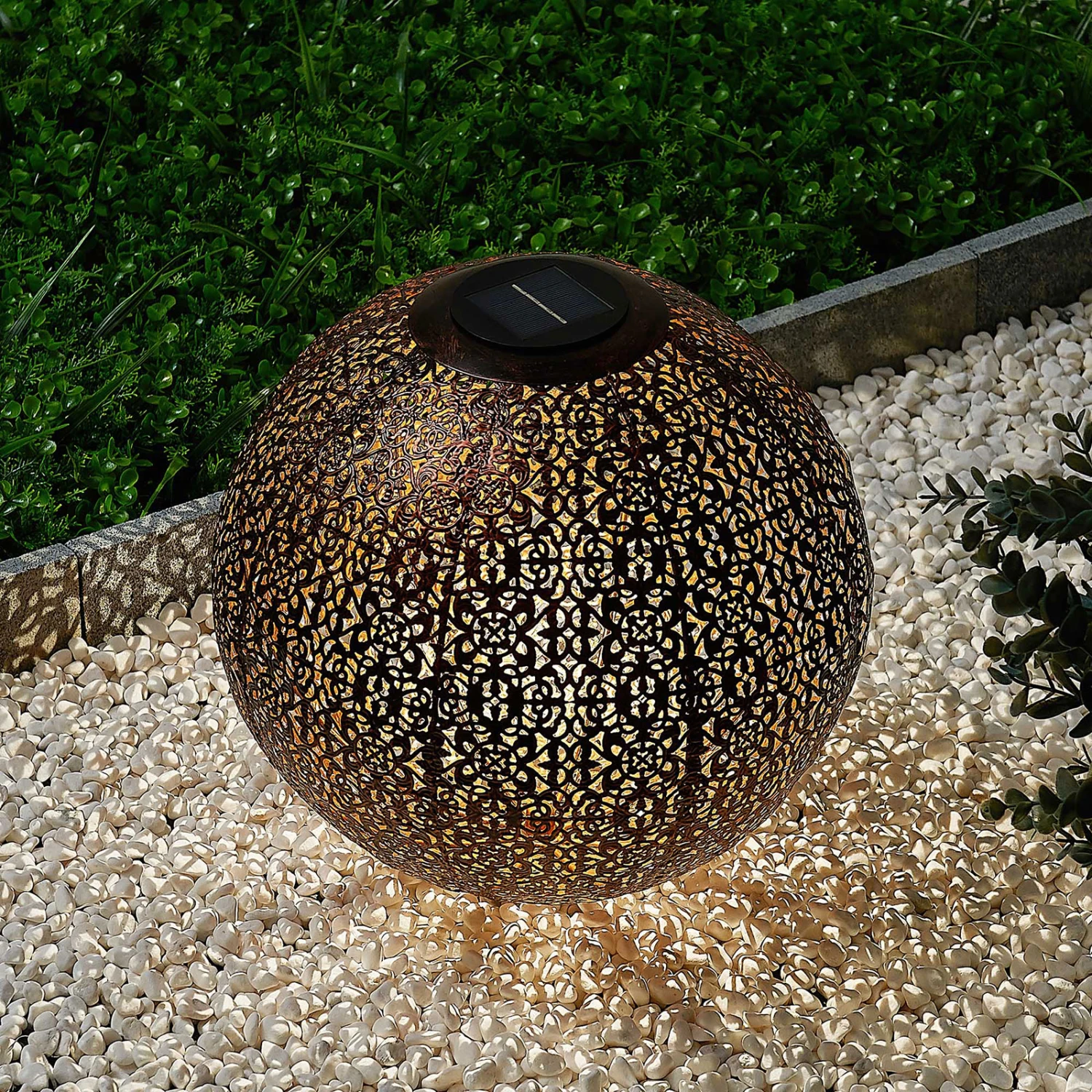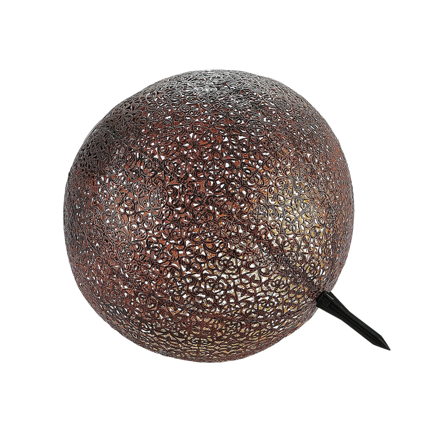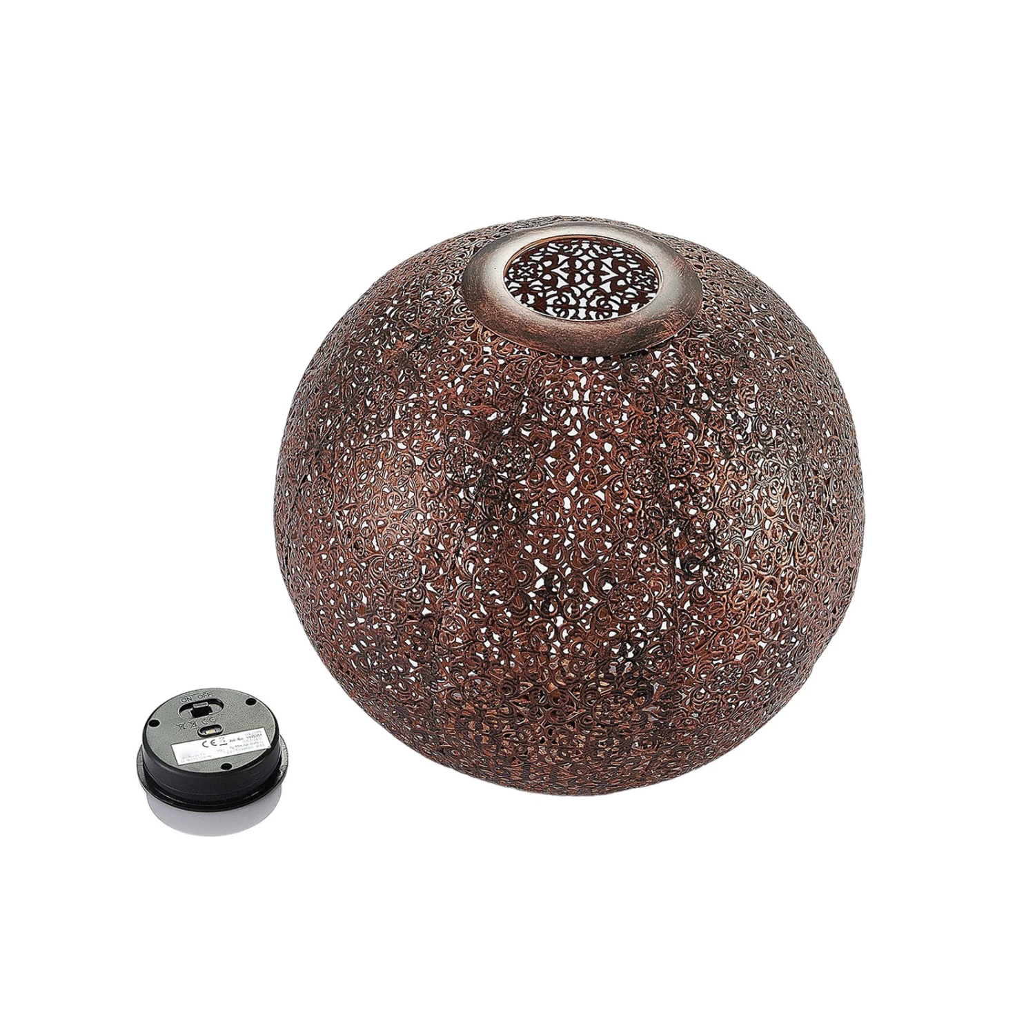 Kugelförmige LED-Solarleuchte Eddis mit kupferfarbenem Ornamentlook für eine orientalische Ausstrahlung