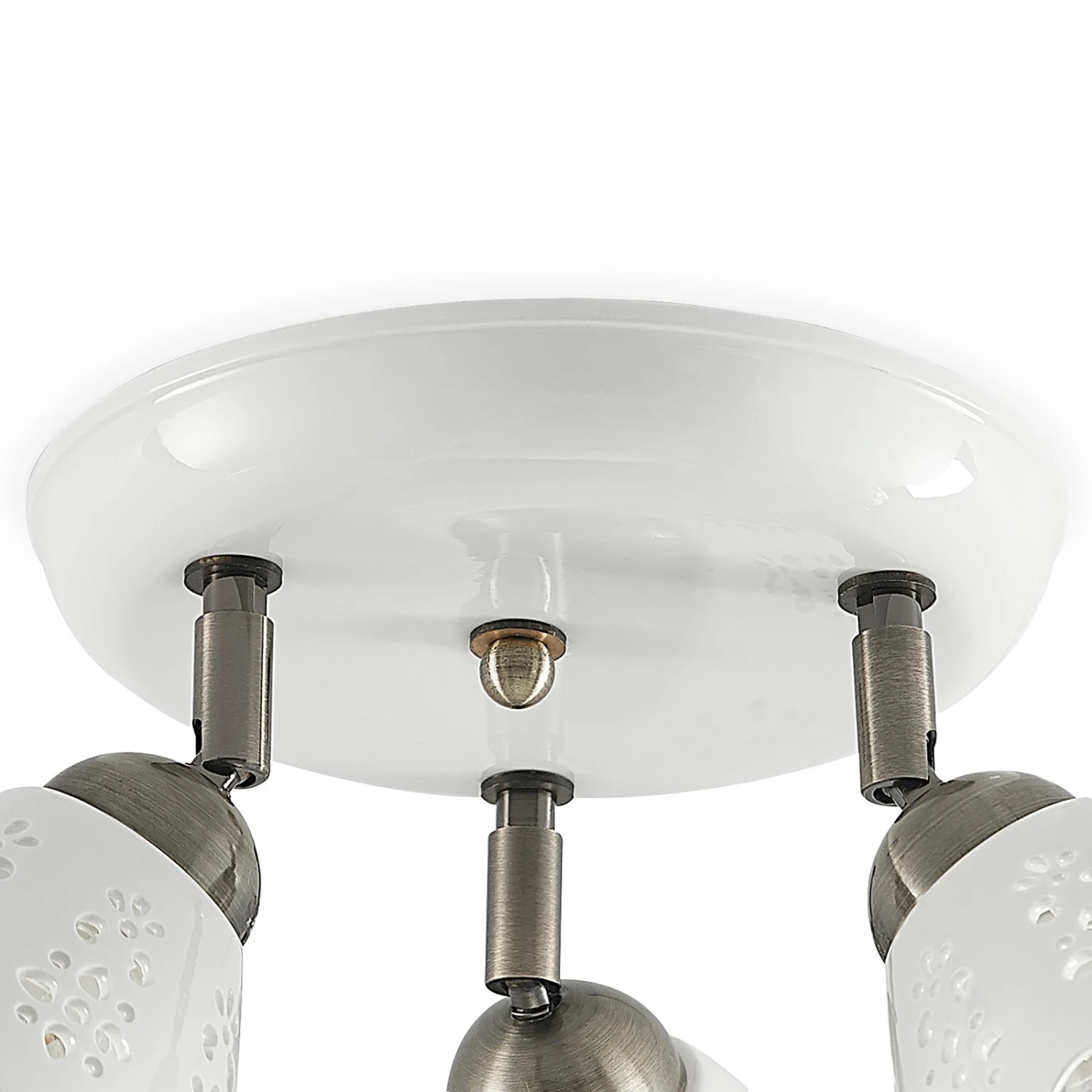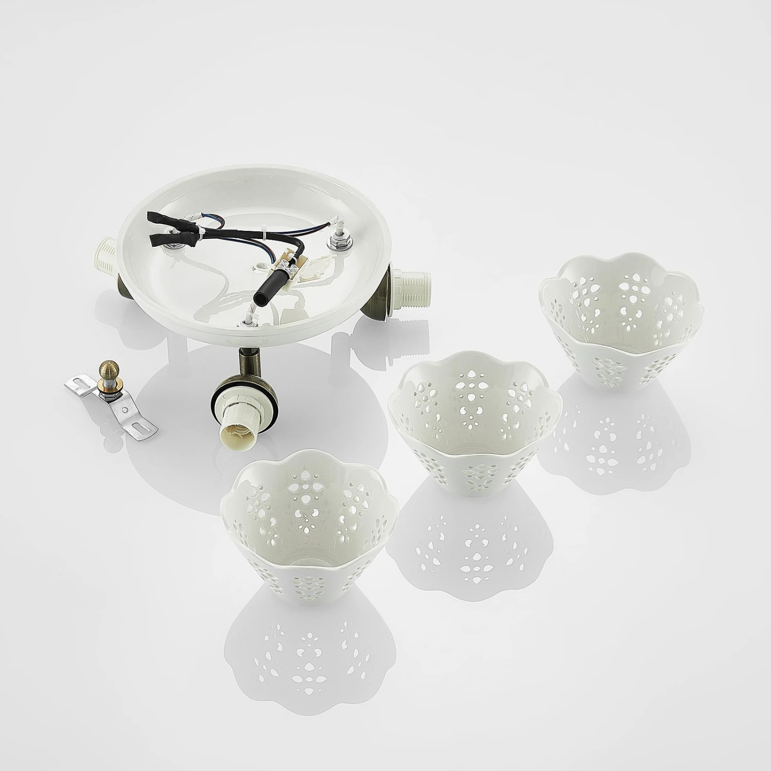 Dreiflammiger Deckenstrahler Efgenia aus Keramik und Eisen in verspieltem Design
