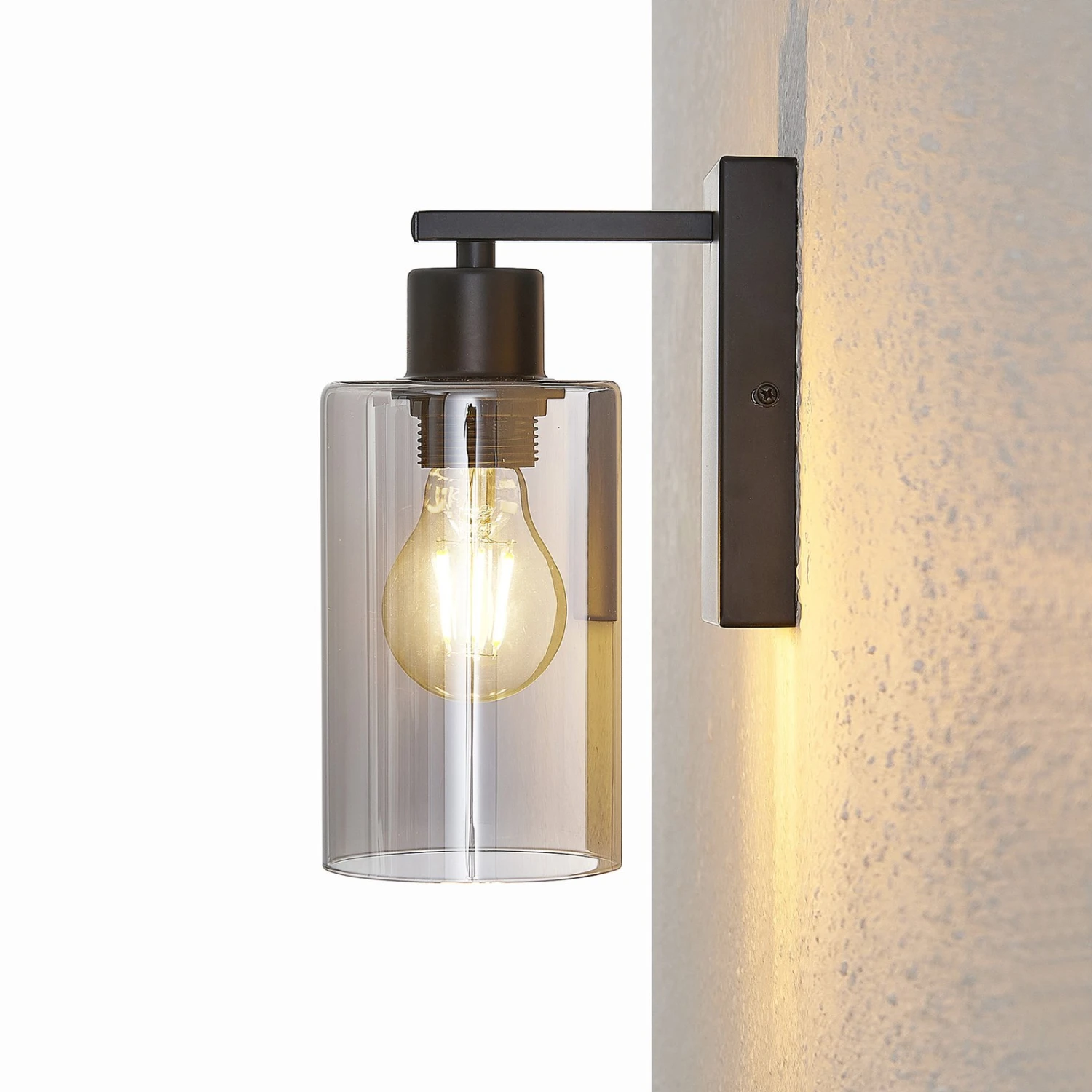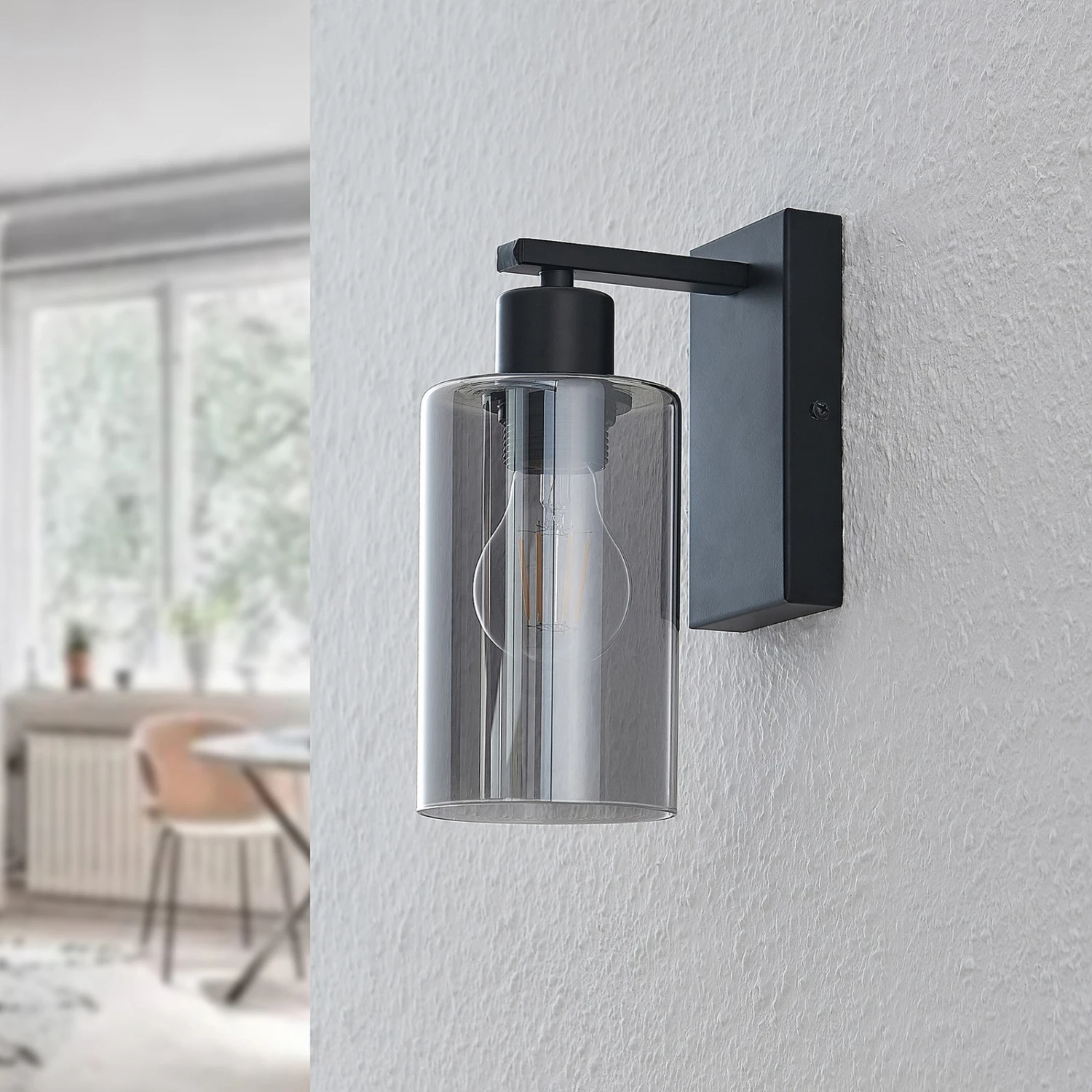 Die Wandleuchte Emavi ist eine schöne Lichtquelle, die sich hervorragend mit modernen Einrichtungsstilen kombinieren lässt. Sie wurde aus Eisen und Glas gefertigt und mit einem schwarzen Oberflächenfinish versehen. Der Leuchtenschirm hat eine klassisch zylindrische Bauform und besteht aus Rauchglas, was für interessante Lichteffekte sorgt. Da der Blick auf die Brennstelle relativ frei ist, empfiehlt sich hier ein dekoratives Leuchtmittel, um die Wirkung dieser Leuchte zu unterstreichen.