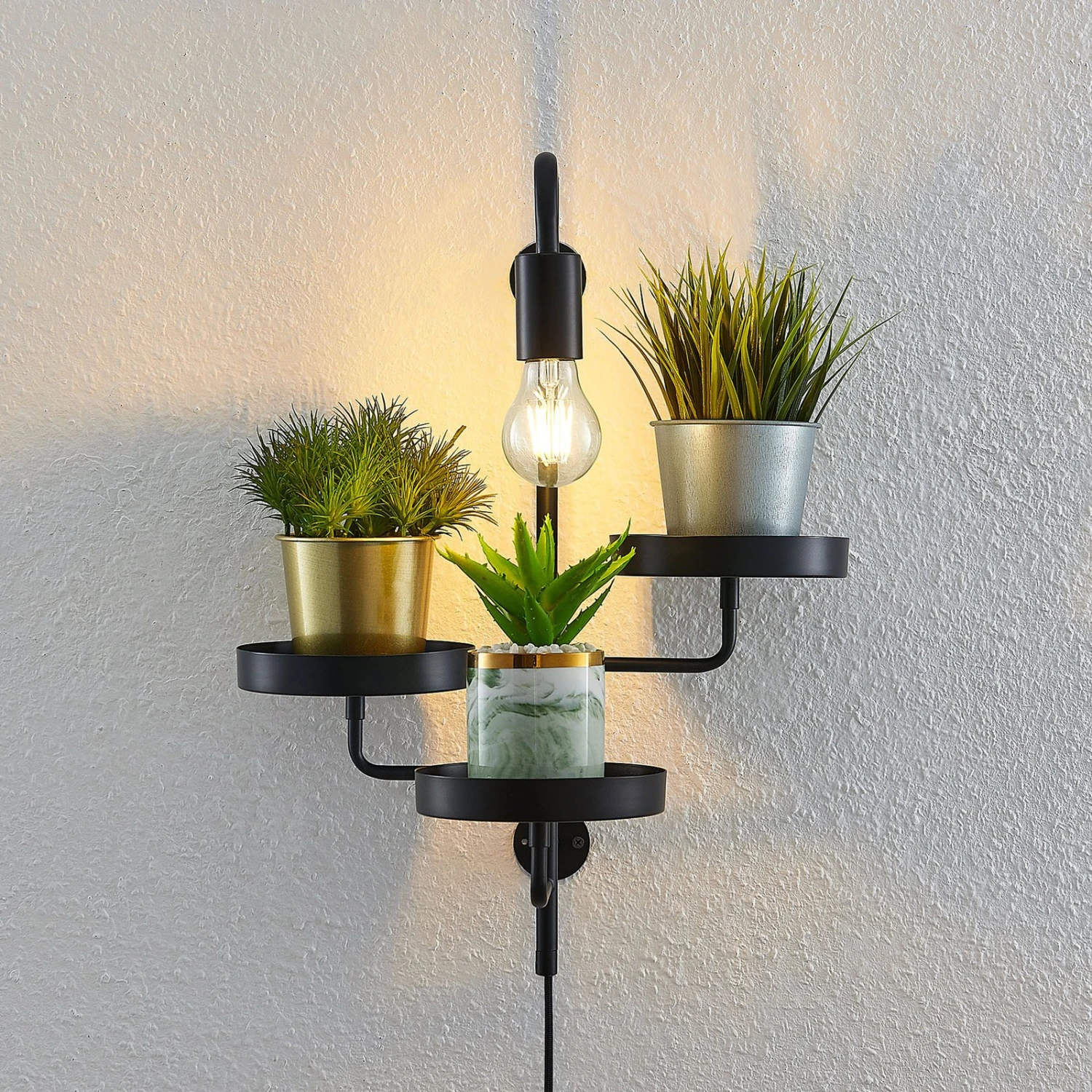 Hanjo Wandleuchte mit drei Ablagen zum Platzieren von Zimmerpflanzen