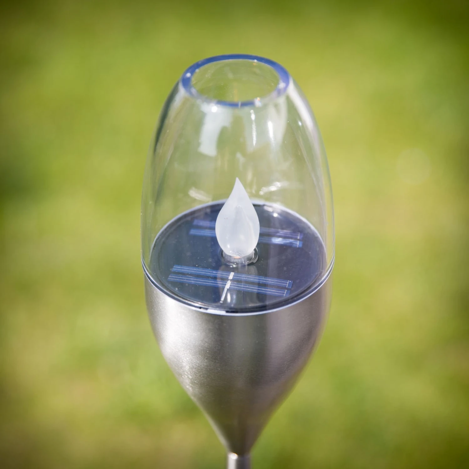 Diese Gartenleuchte ist eine tolle Ergänzung für den Garten, die mit sanftem Lichtschein in einem warmen Amberton überzeugt. Darüber hinaus flackert die solarbetriebene LED im Stil von echtem Kerzenlicht, was in jedem Garten zu einer unvergleichlich schönen Stimmung beizutragen vermag. Ausgestattet mit einem Erdspieß kann die LED-Solarleuchte einzeln oder in Reihe entlang von Beeten, Wegen und Rasenflächen platziert werden, ohne dass man sich aufwendig auf die Suche nach einer Stromquelle machen muss oder lästiger Kabelsalat ein Problem darstellen könnte.