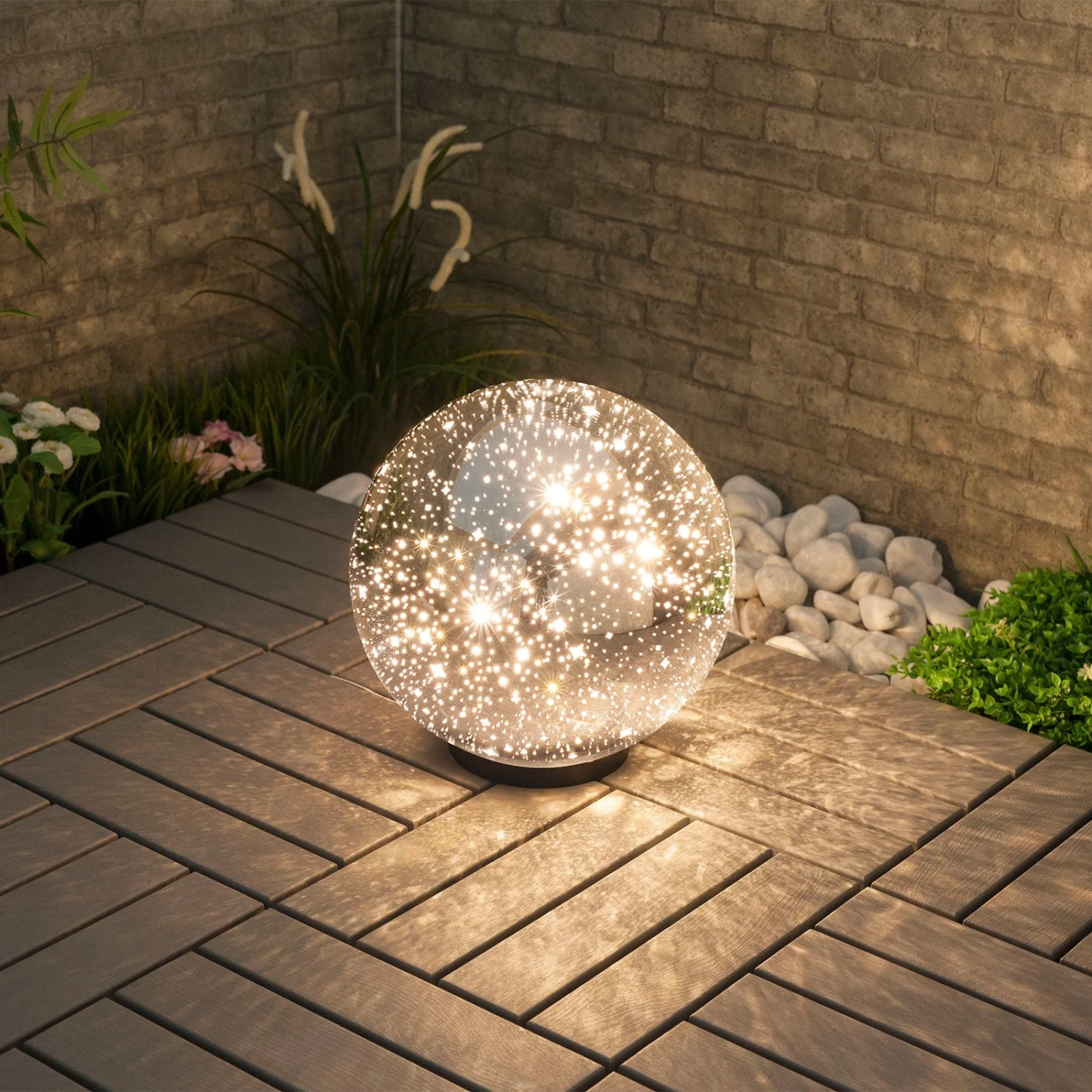 LED-Dekoleuchte Kamui mit Glitzereffekt für den Außenbereich, kugelförmig