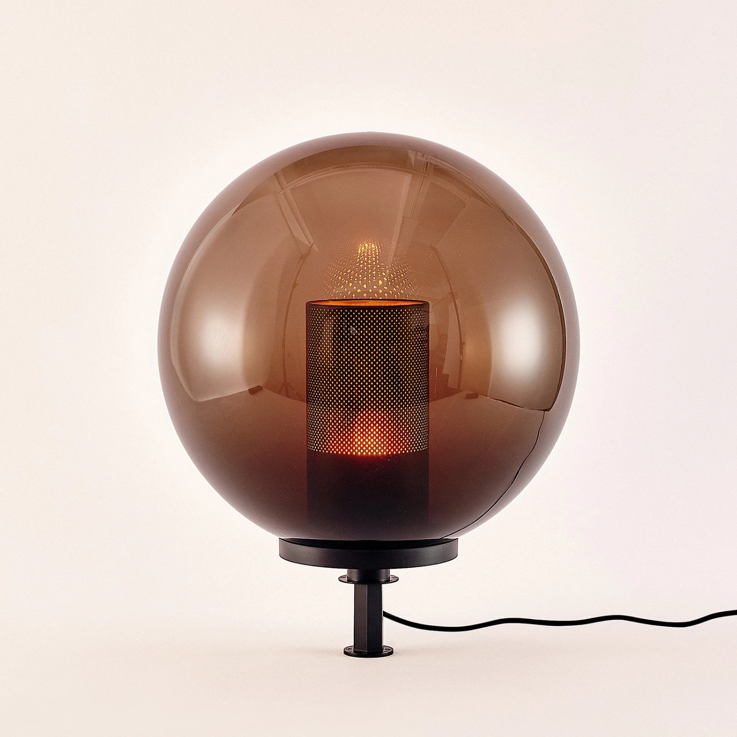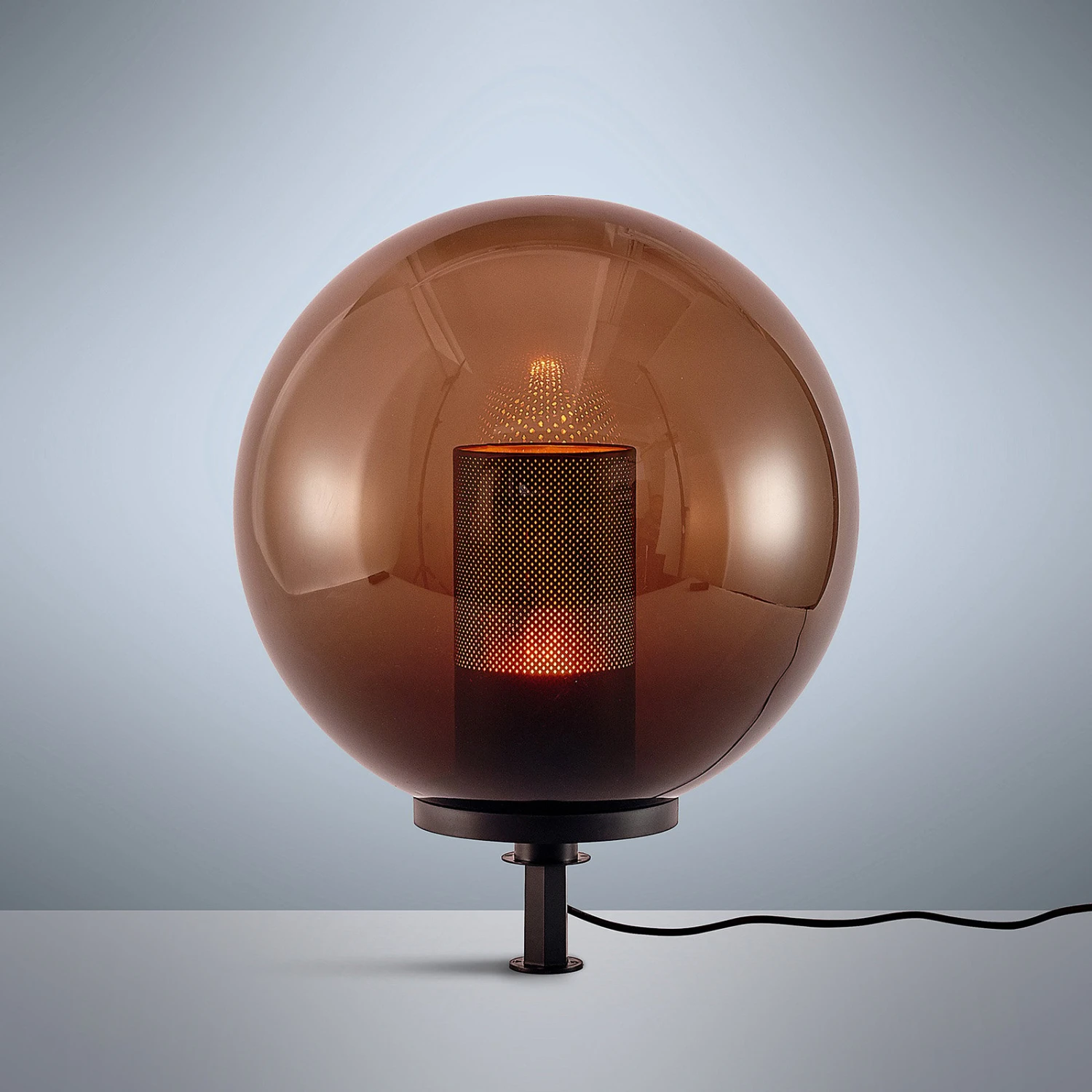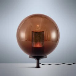 Die Deko-Leuchte Kibara fällt auf mit ihrem rauchgrauen Leuchtenschirm in klassischer Kugelform. Auf einem runden Sockel ruht der Leuchtenschirm aus Kunststoff – in seinem Inneren ist ein kleiner Diffusor in Zylinderform sichtbar. Aus diesem Grund kann Kibara vor allem mit Leuchtmittel in Kerzen-Optik bestückt werden. Darüber hinaus wird sie darüber hinaus mit einem Erdspieß geliefert, sodass sie als normale Terrassen-Leuchte für den Tisch oder als Erdspieß-Leuchte im Garten genutzt werden kann.