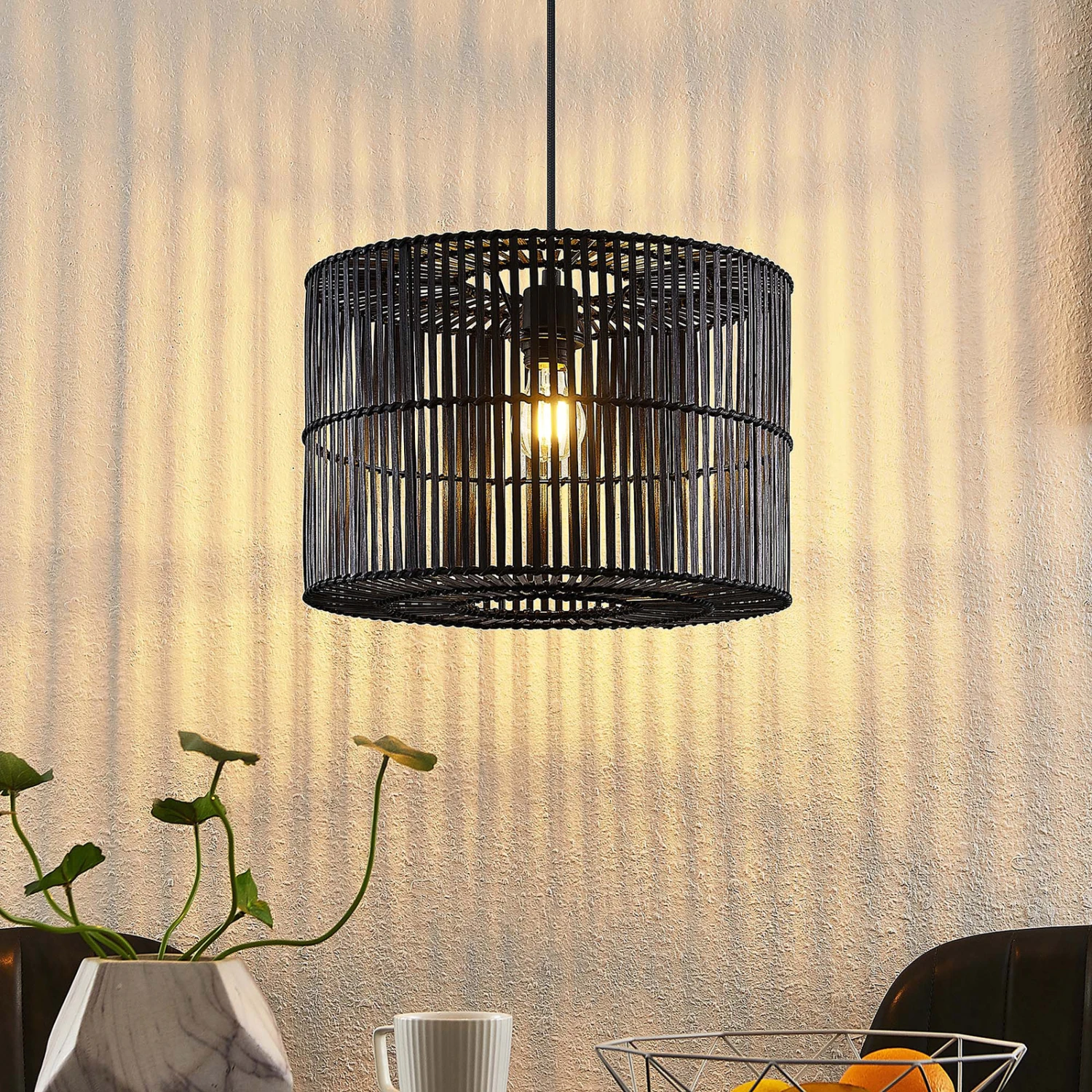Schwarze Bambus-Pendelleuchte Rabiya mit effektvoller Lichtwirkung