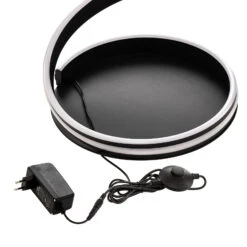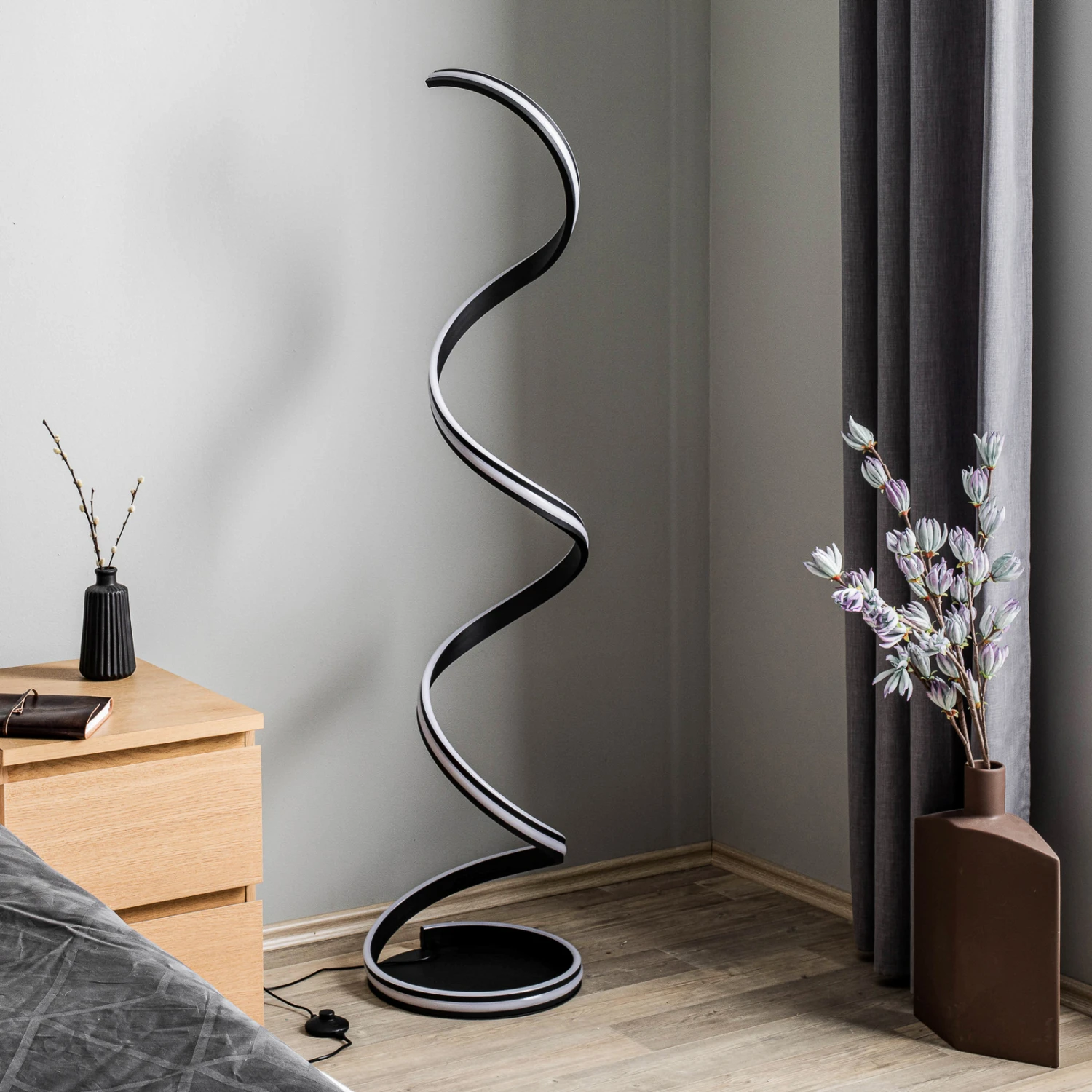 Schwarze LED-Stehleuchte Salloa mit Dimmfunktion und CCT-Farbwechsel, Spirale