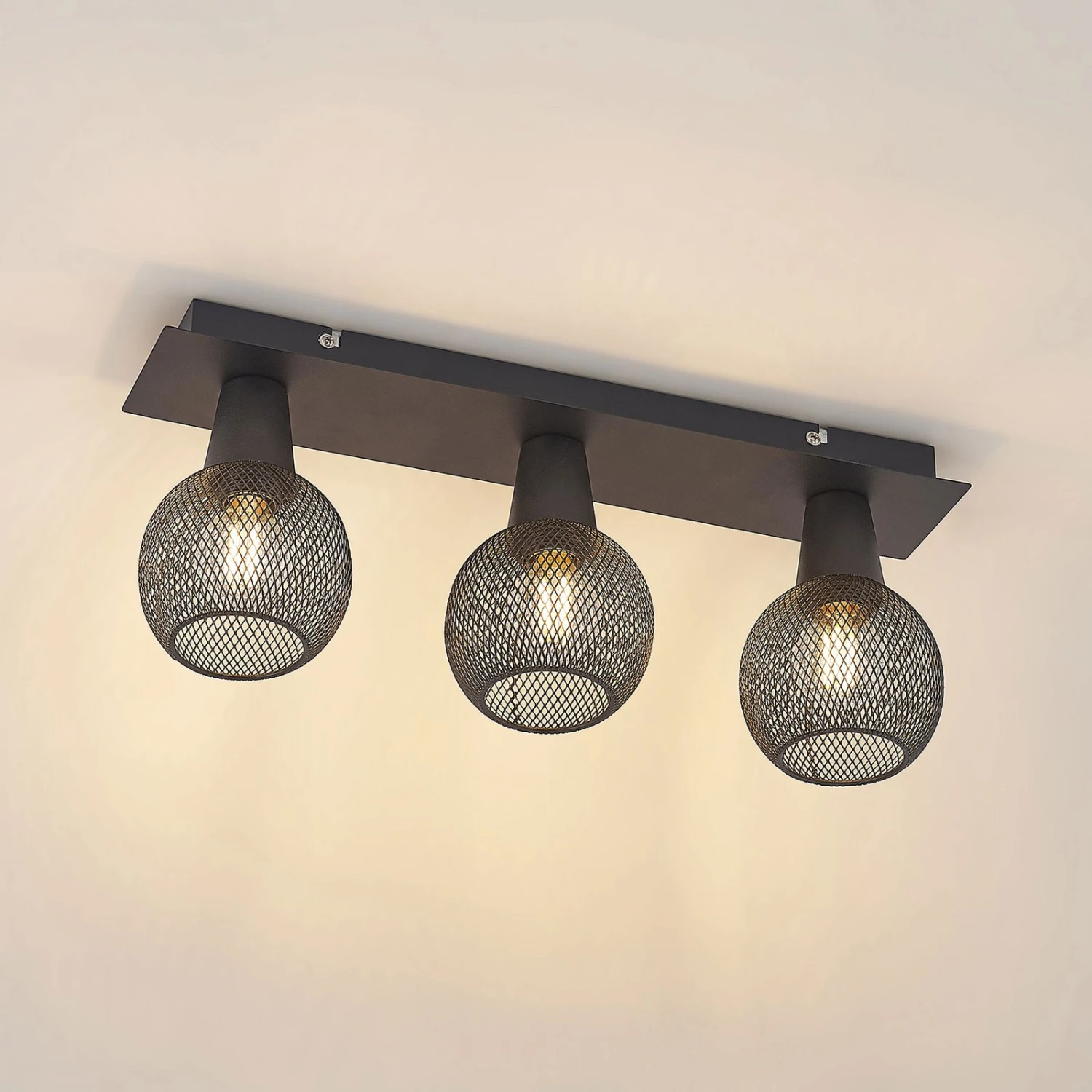 Dreiflammige Deckenleuchte Zerda mit drei Schirmen in Kugeloptik