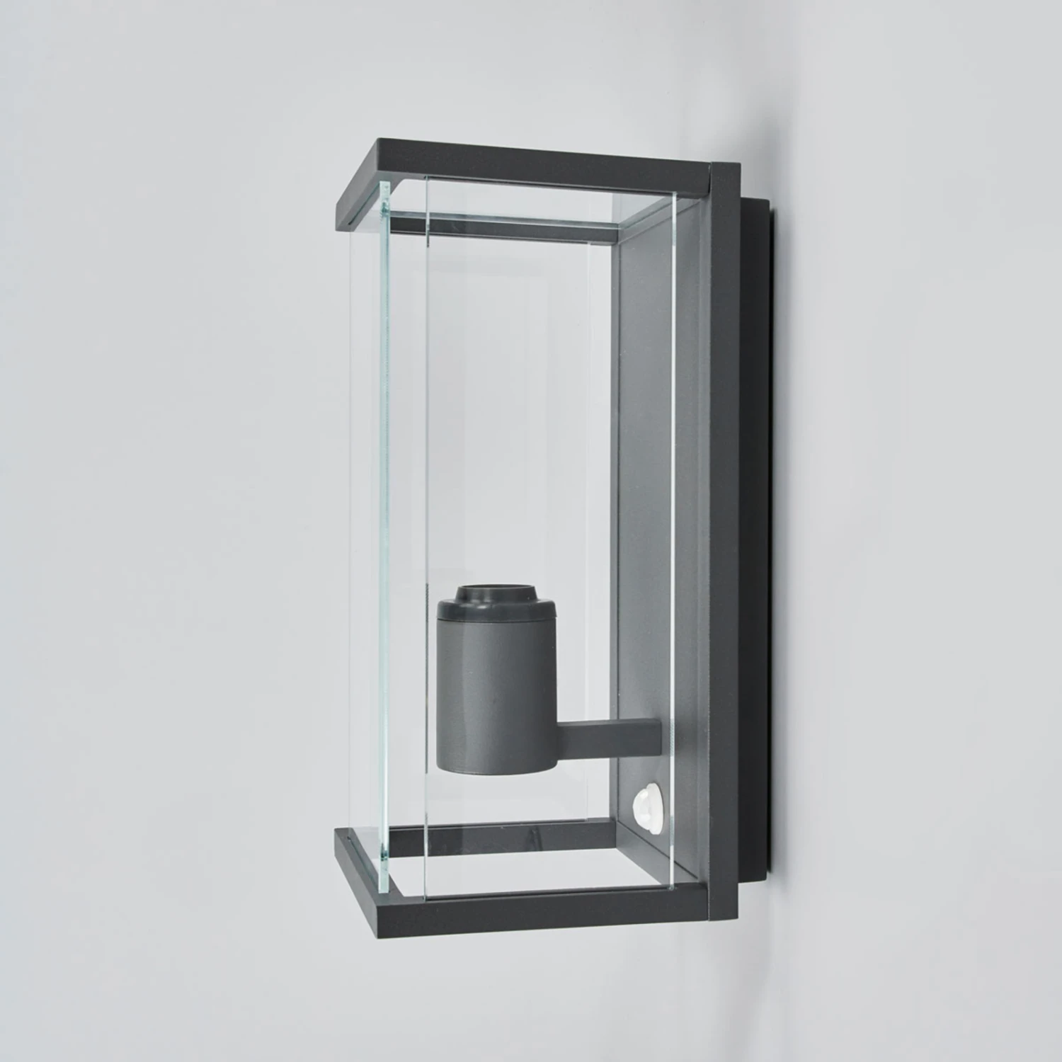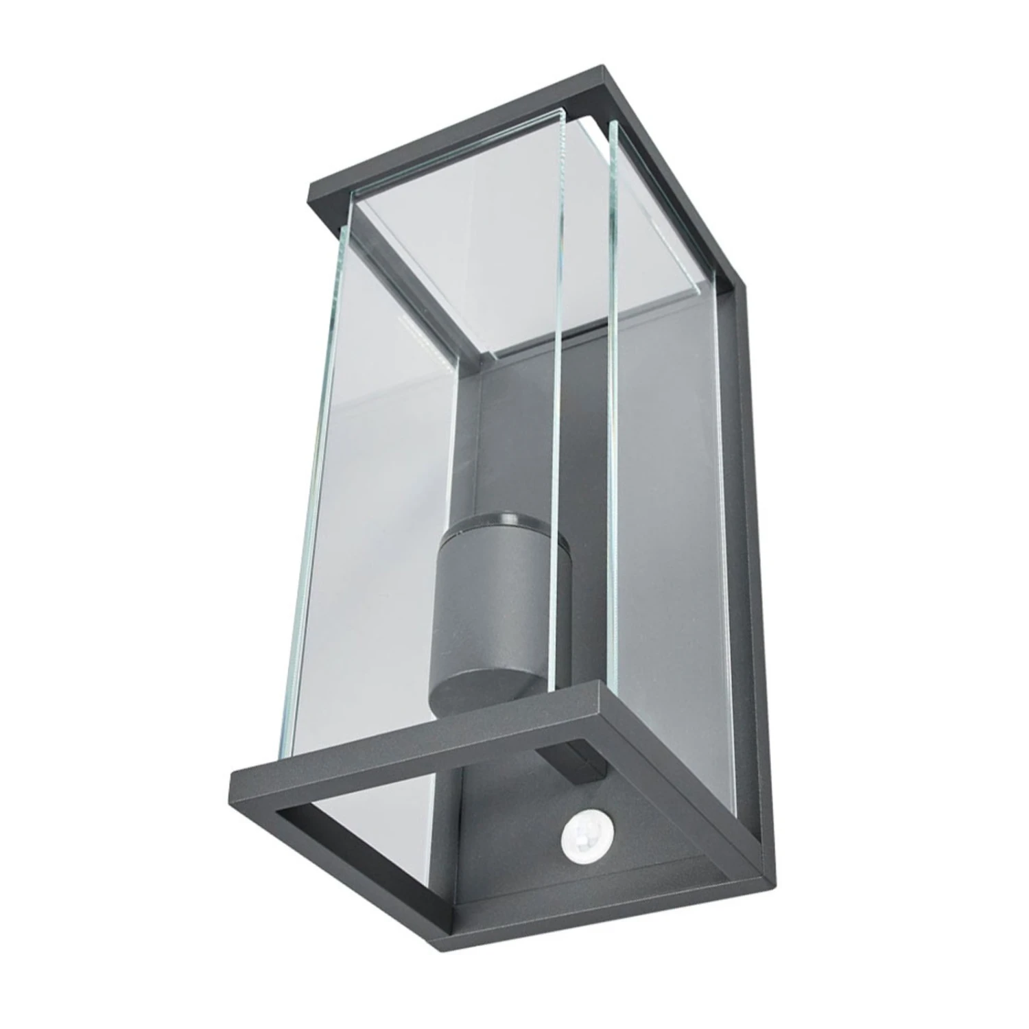Eckige Außenwandlampe Annalea mit klaren Glasscheiben und integriertem Bewegungsmelder