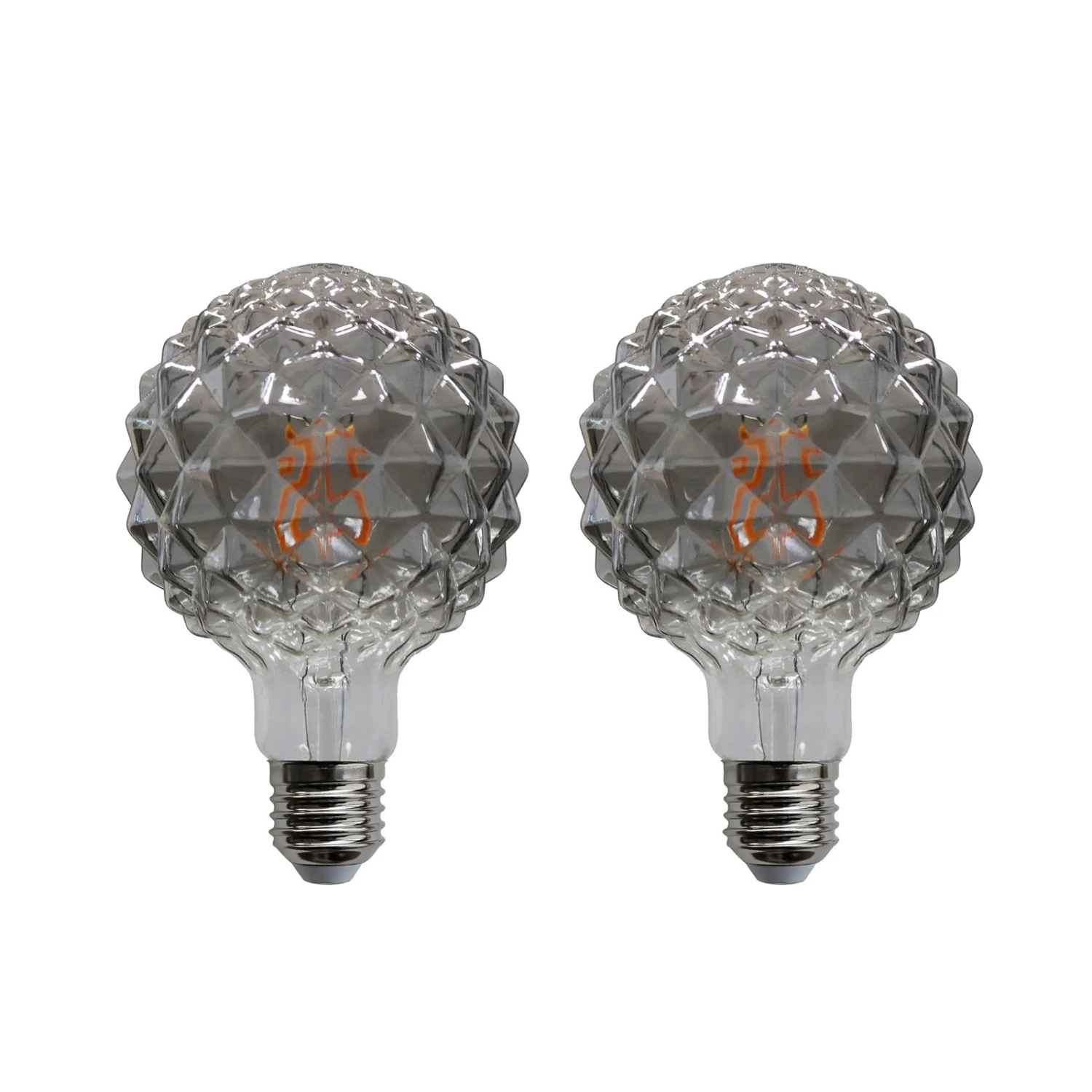 Rauchgraue LED-Globelampe E27 in Filamentoptik mit strukturierter Oberfläche, 1.800 K, dimmbar, CRI > 90, 2er-Set