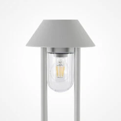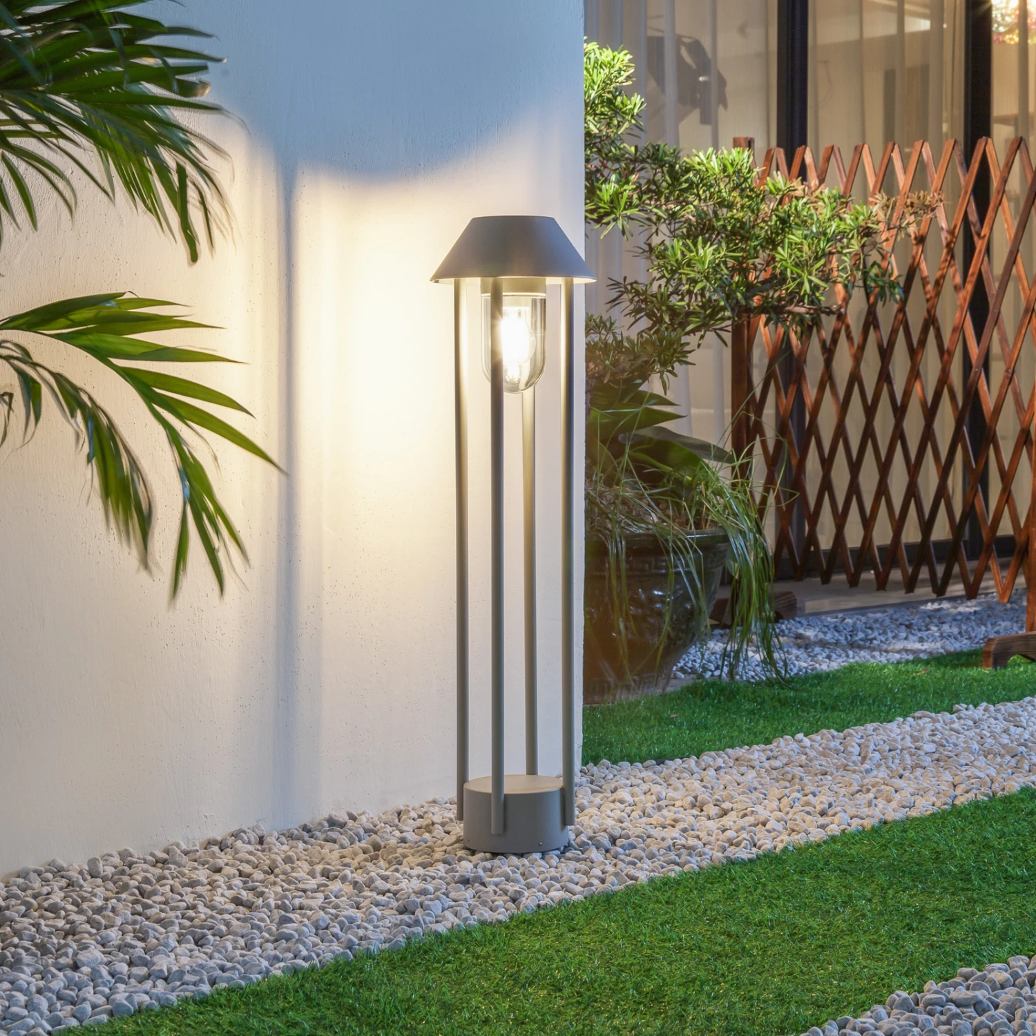 Diese schöne Lichtquelle überzeugt mit ihrem Design und den beständigen Materialien. Hergestellt aus robustem Edelstahl und Aluminium, präsentiert sich die Wegeleuchte Olinum in einem schlichten silbergrauen Oberflächenfinish.