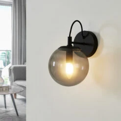 Wandleuchte Sotiana mit Glaskugel in Rauchgrau