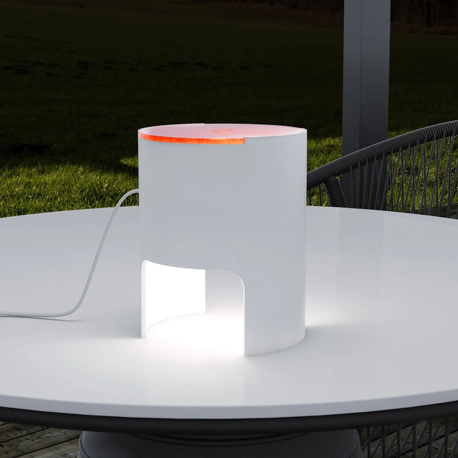 Civetta ist ein leuchtendes Accessoire für Nachttisch, Fensterbank und Beistelltisch. Als weiß lackierter Zylinder aus Aluminium mit zwei Tor-Ausschnitten am Fuß und einer oberen, satinierten Methacrylat-Abdeckung designt, strahlt die Tischleuchte das Licht der einzusetzenden E27-LED-Lampe (siehe Zubehör) sowohl auf die unterhalb gelegene Fläche als auch diffus nach oben aus. Somit entsteht eine angenehme Zusatzbeleuchtung.